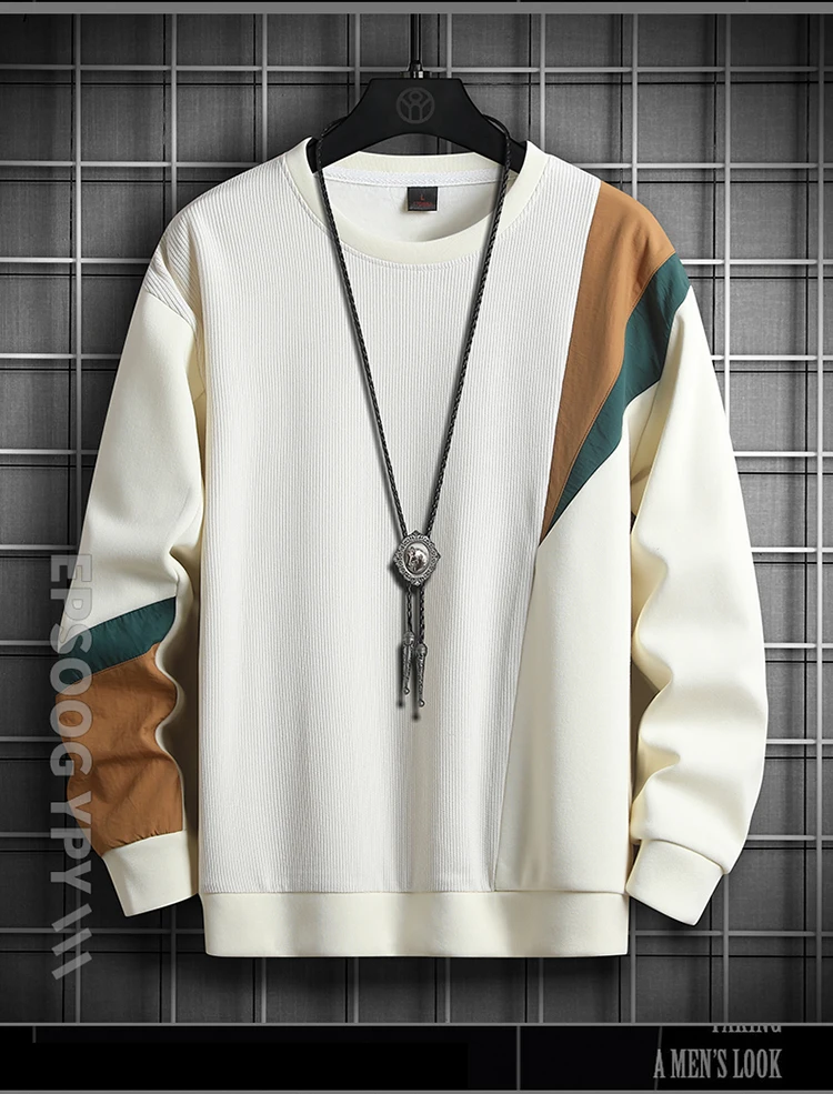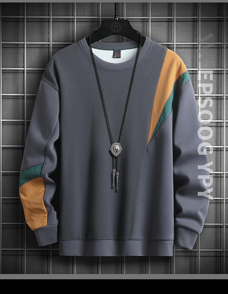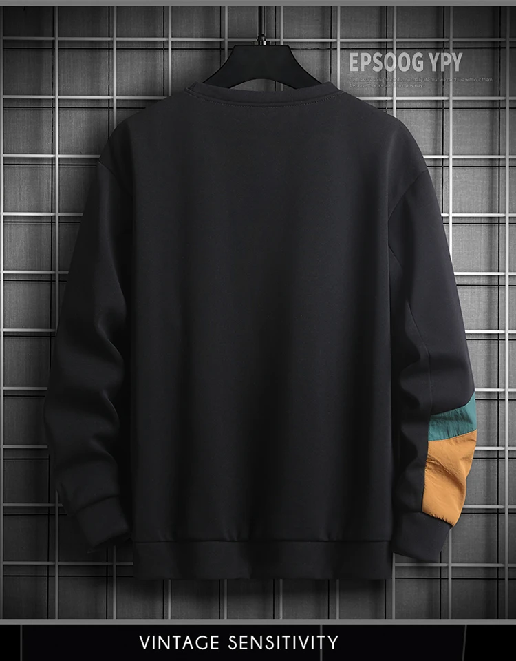 O Neck Hip Hop Pullover Streetwear Hoodies Sweatshirts for Men with Patchwork