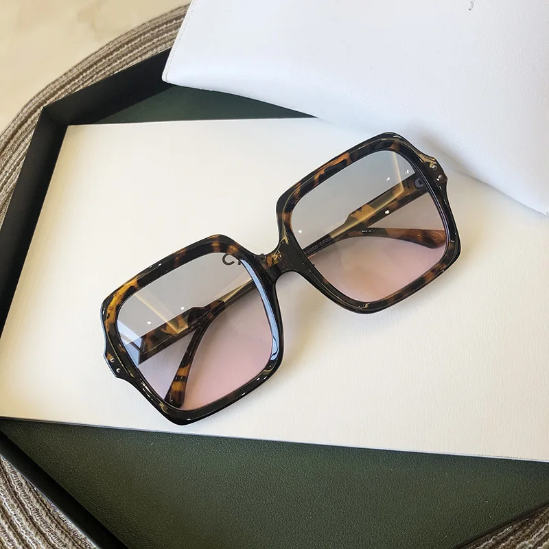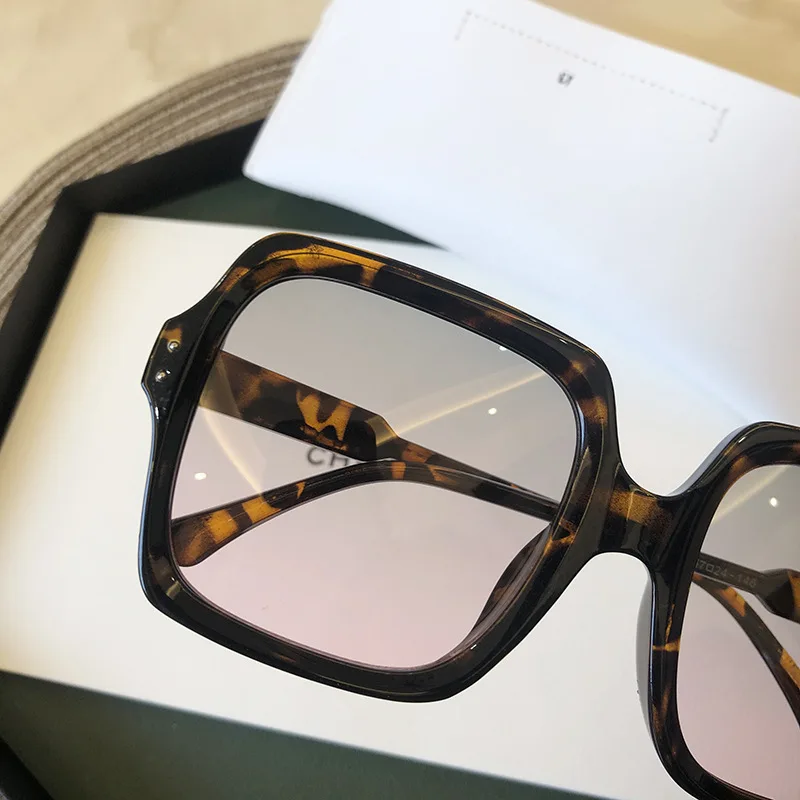 Oversize Square Sunglasses For Women Fashion Vintage Black Brown Sun Glasses Men Retro Rivet Eyewear Female Gradient Shades