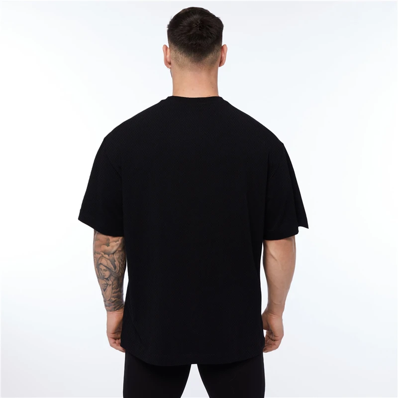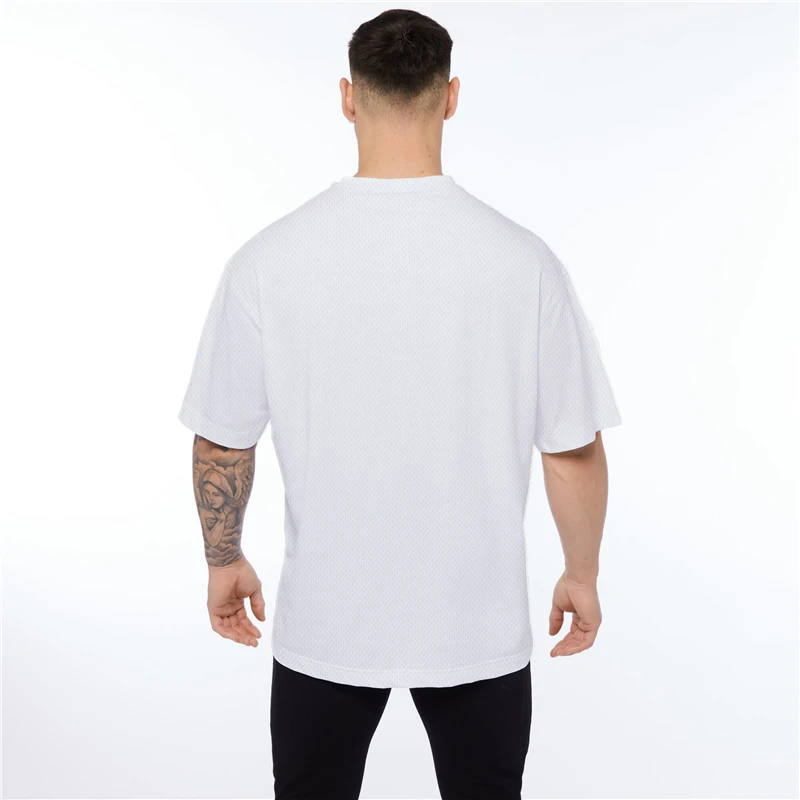Oversized T-shirt Mens Dropped Shoulder Short Sleeve Fitness T Shirt Men Summer Mesh Loose Gym Clothing Bodybuilding Tops Tees