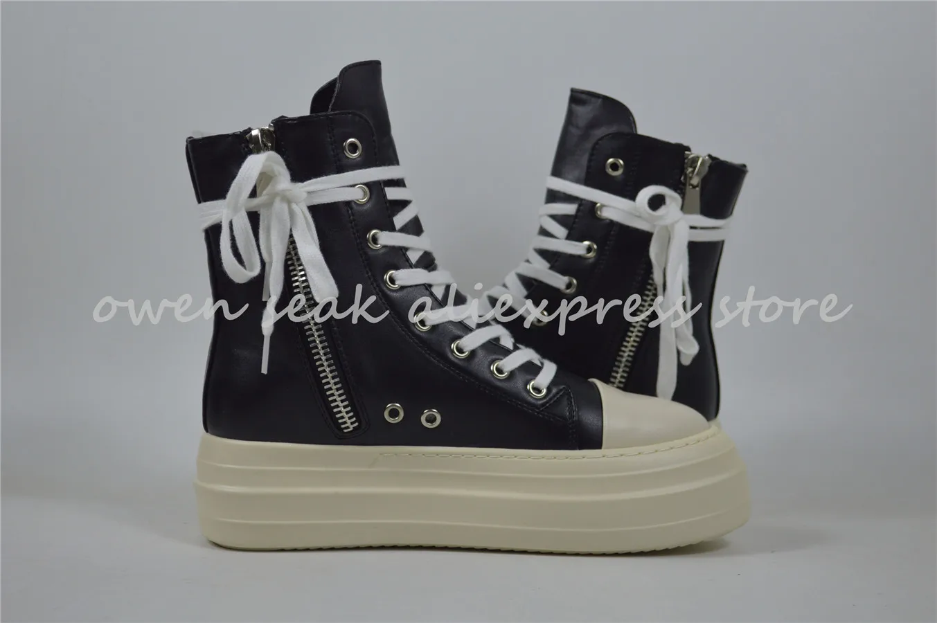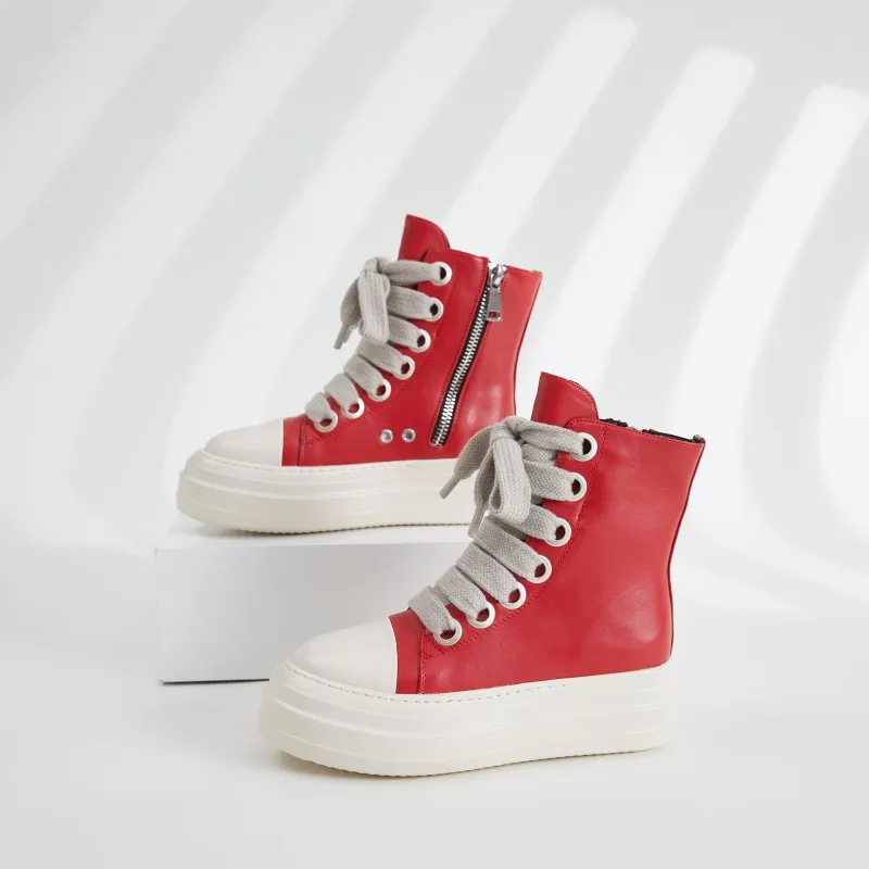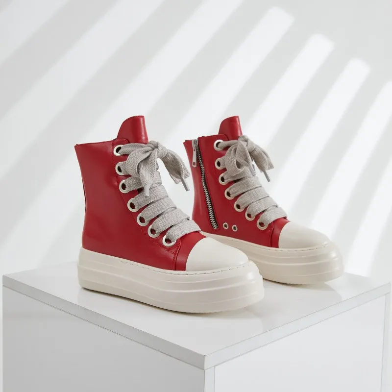 Owen Seak Women Canvas Shoes Luxury Trainers Platform Boots Lace Up Sneakers Casual Height Increasing Zip High-TOP Black PU Shoe