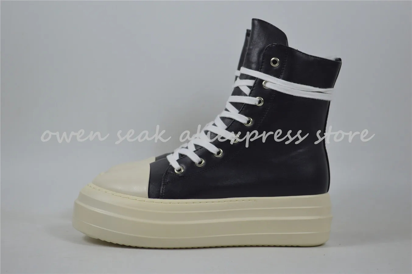 Owen Seak Shoes High-TOP Ankle Boots Canvas Luxury Trainers Boots Casual Lace-up Zip Flats Shoes Black White