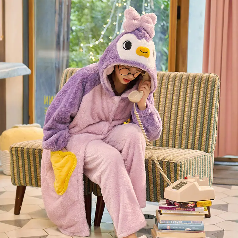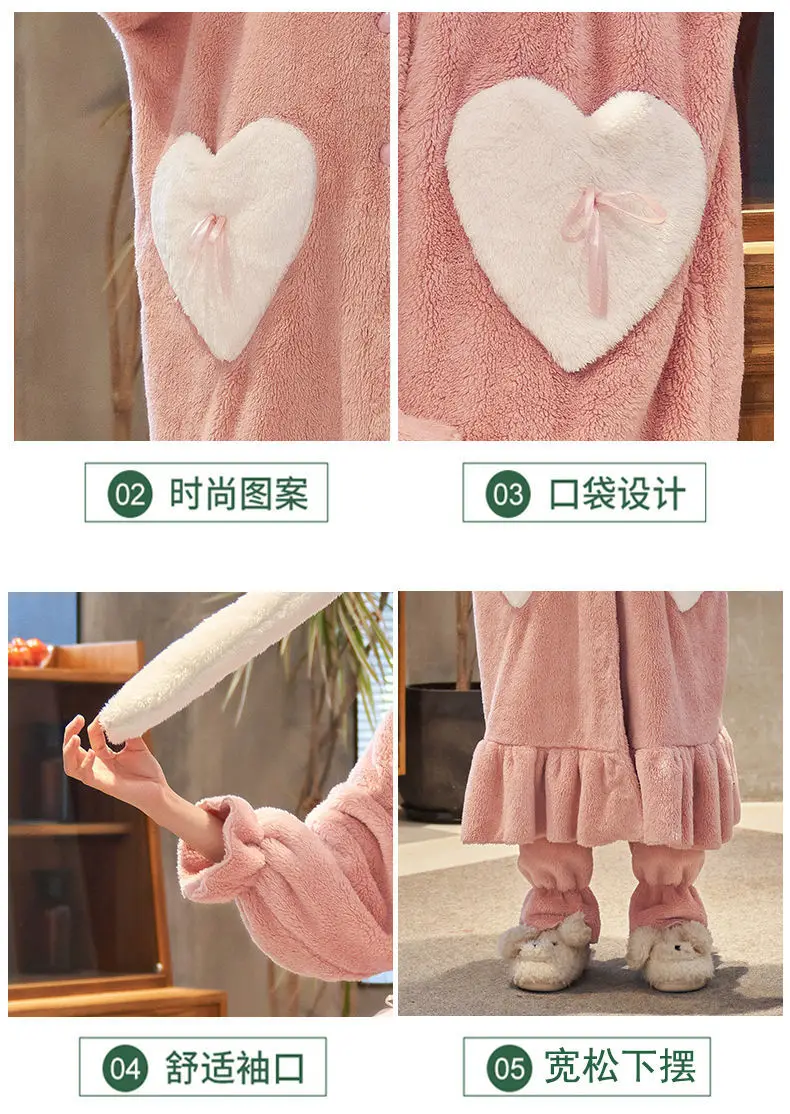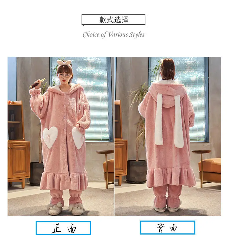 Pajama Sets Women Winter Thickening Warm Hooded Long Sleeve Tops Sweet Fluffy Students Home Lounge Wear Korean Style Night Suits