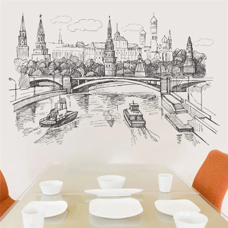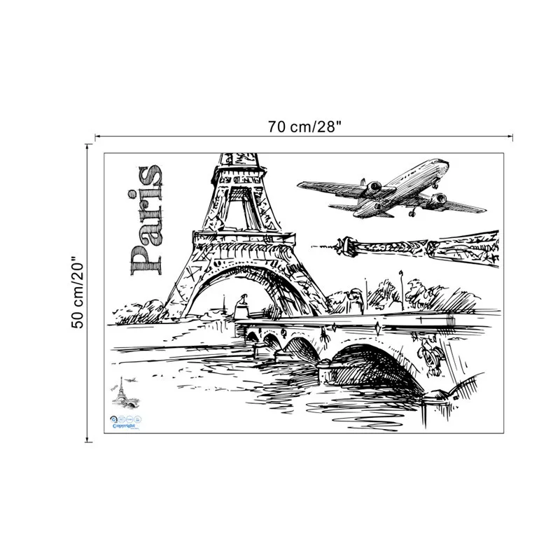 Paris Eiffel Tower Wall Stickers Living room bedroom Restaurant TV Sofa Background decoration 3d window Wall Decals Home Decor