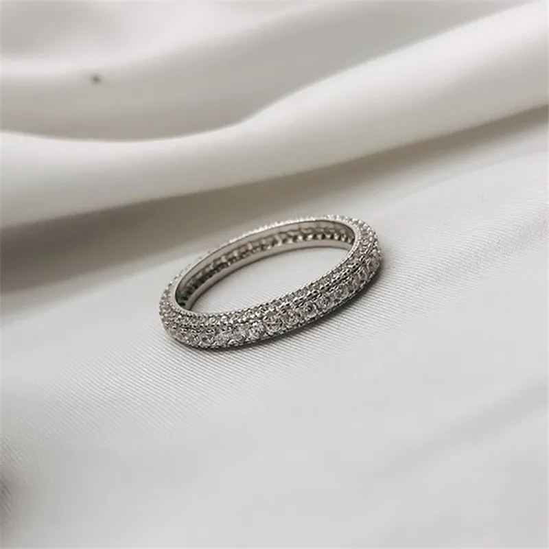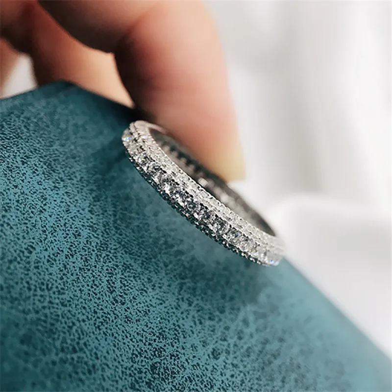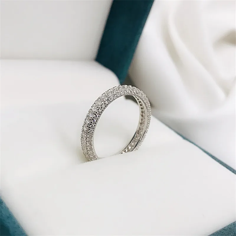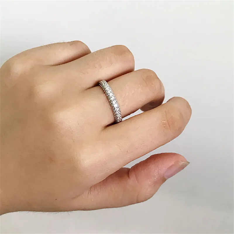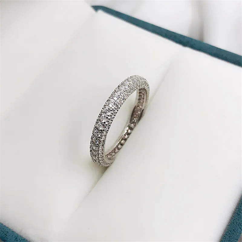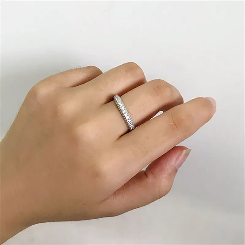 Paved Created Moissanite Ring Real 925 Sterling Silver Wedding Bands Enternity Rings For Women Fine Luxury Jewelry 2021 New