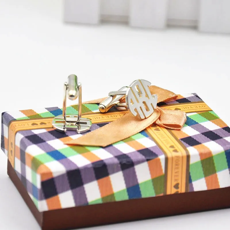 Personalized Block Monogram Cufflinks 925 Solid Silver Nameplate Initial Cuff Link Memory Men Jewelry Christmas Gift