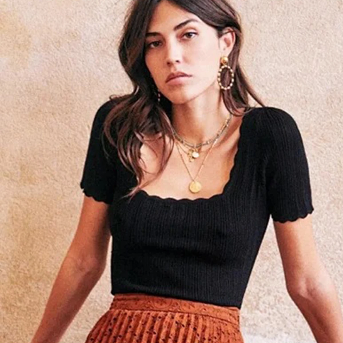 Petal Solid Elegant Shirt Women Clothes Short Sleeve Chic Wave Square Neck Blouses Summer 2020 Casual Vintage Sweet Outfits Tops