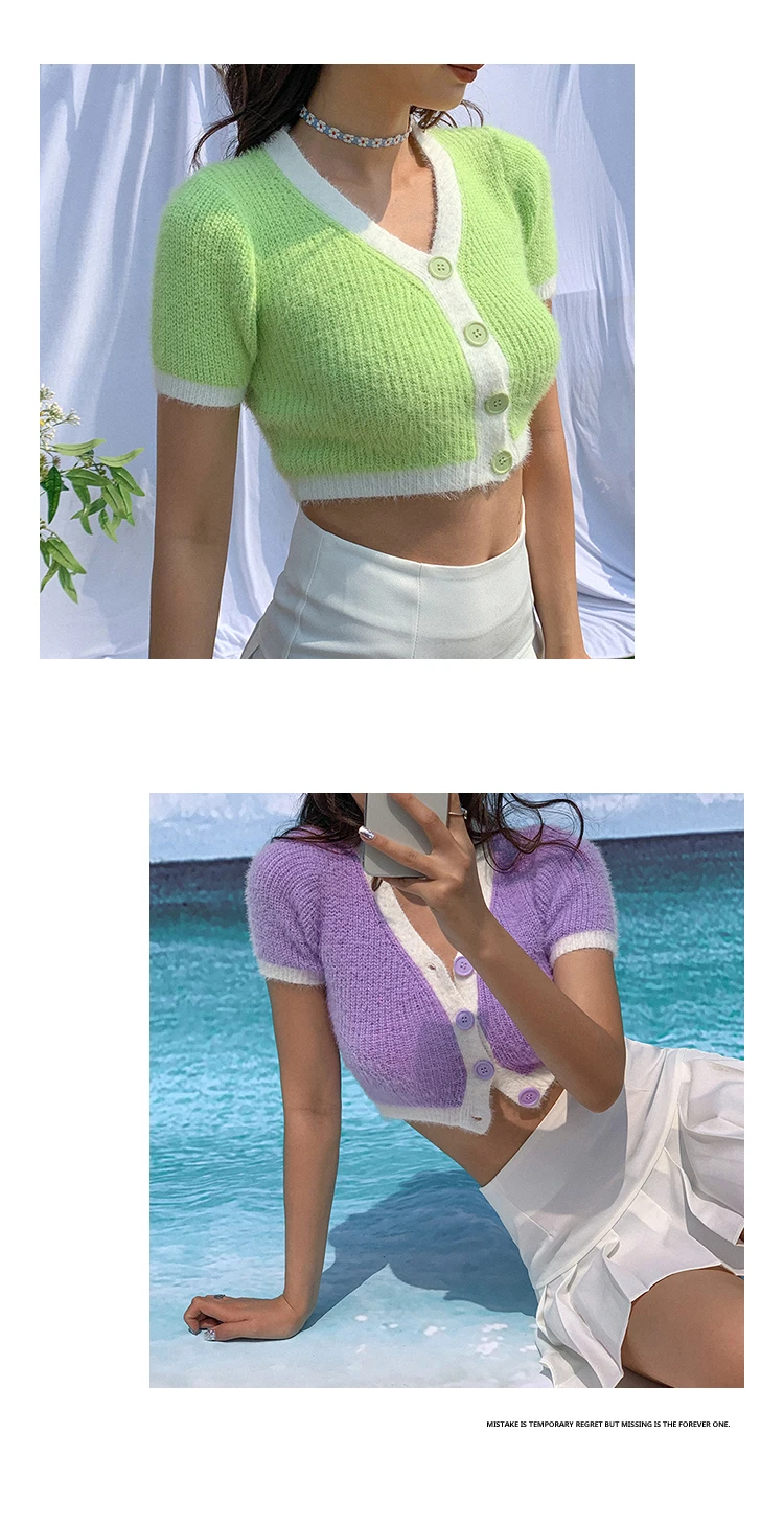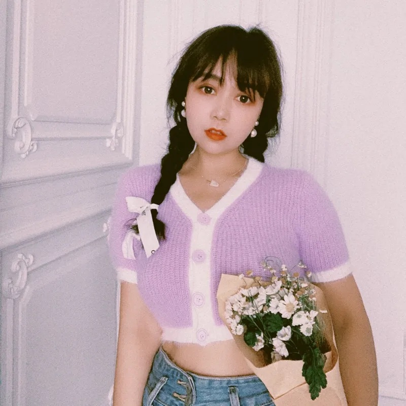Pink cardigan crop top women Korean cropped cardigan knitted kawaii sexy sweater purple kawaii sweater green cardigan vintage