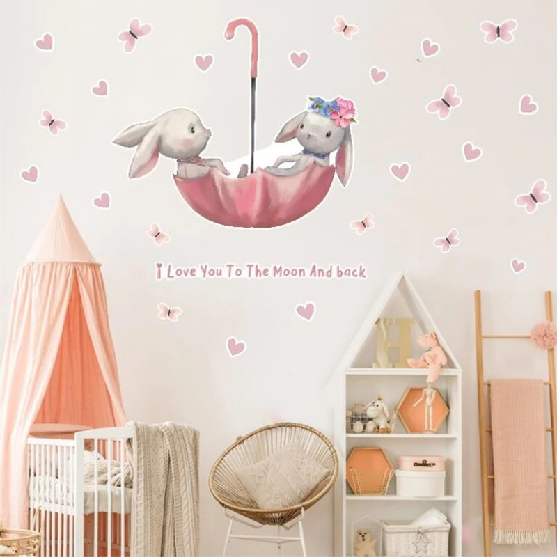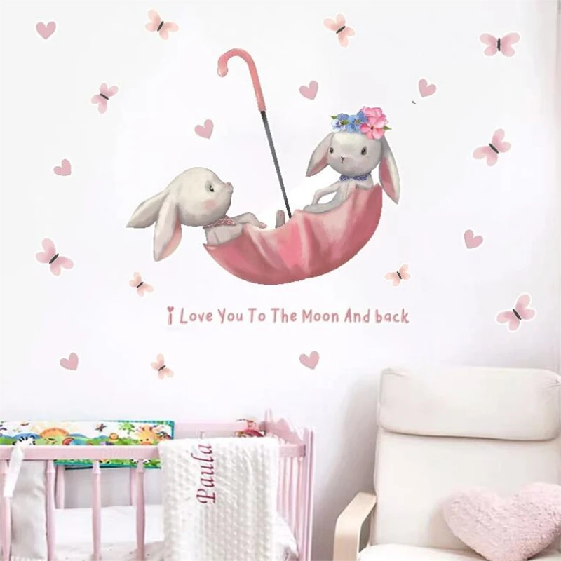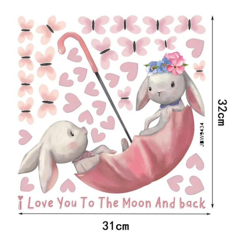 Pink cute rabbit wall sticker for kids room, living room bedroom wall decoration, home decoration, door sticker