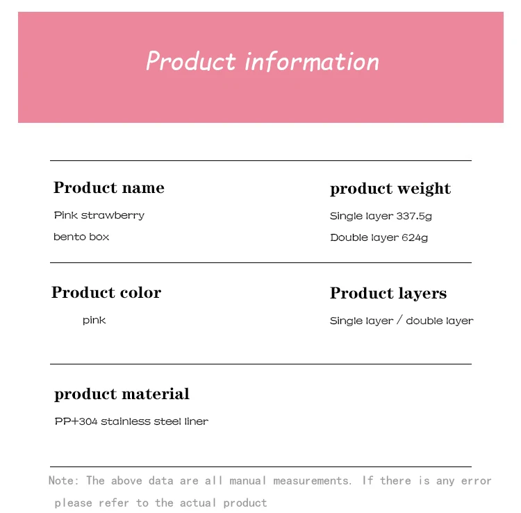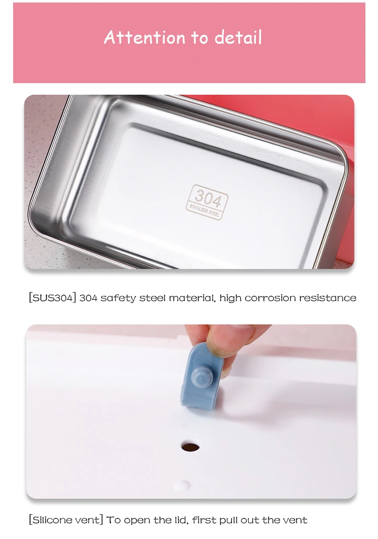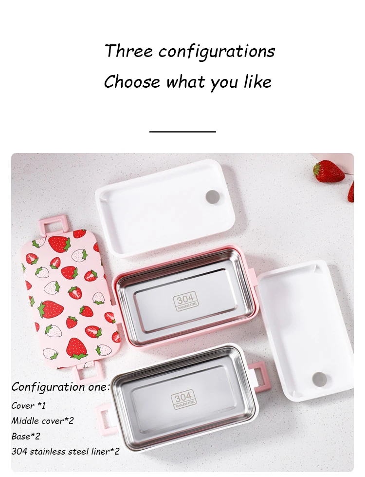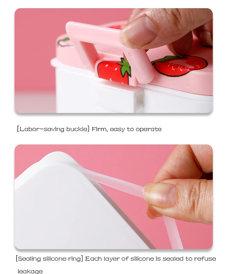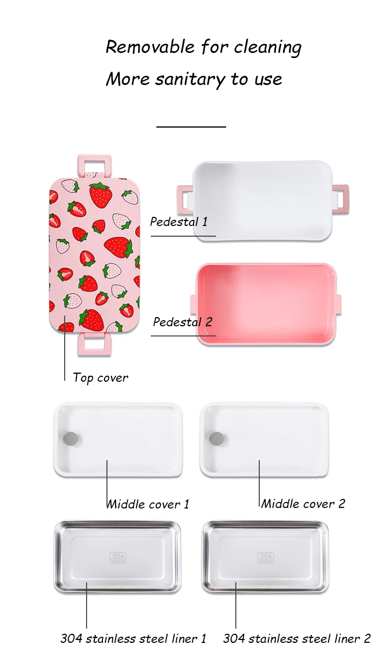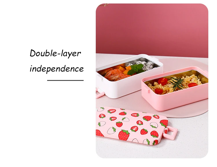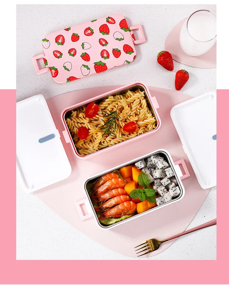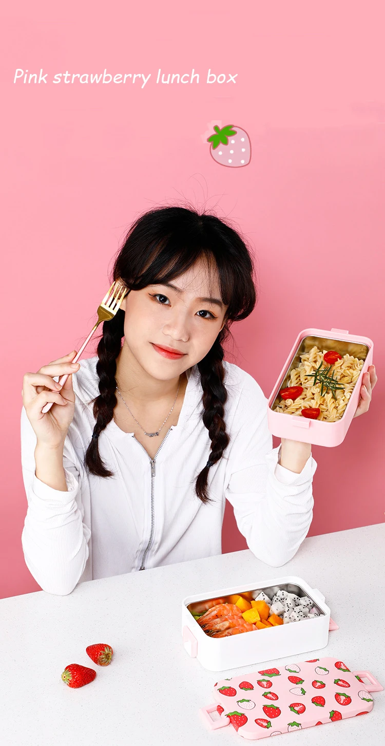 Pink Strawberry Lunch Box Stainless Steel Insulated Bento Box Student Office Worker Meal Box Picnic Can Be Microwaved Heating