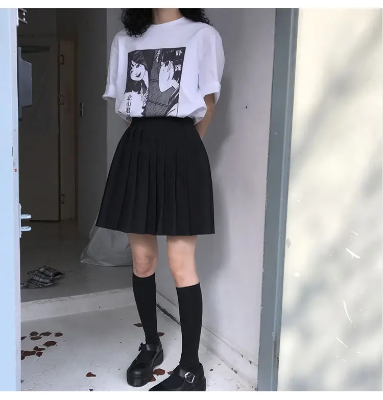Pleated Skirts Women High Waist Students Lovely Preppy Lolita Style College Womens Solid Plus Size 5XL Ulzzang Fashion