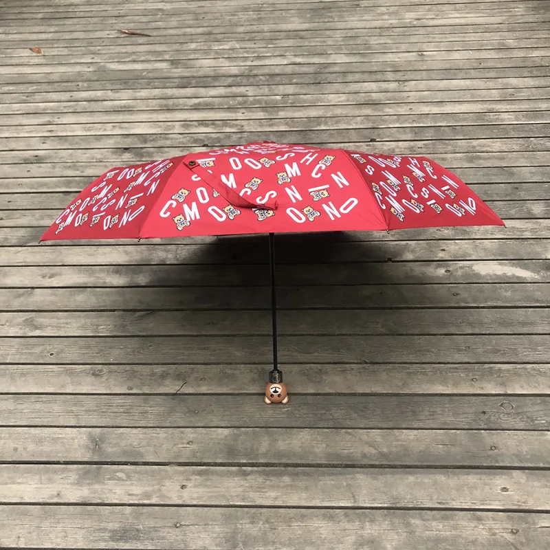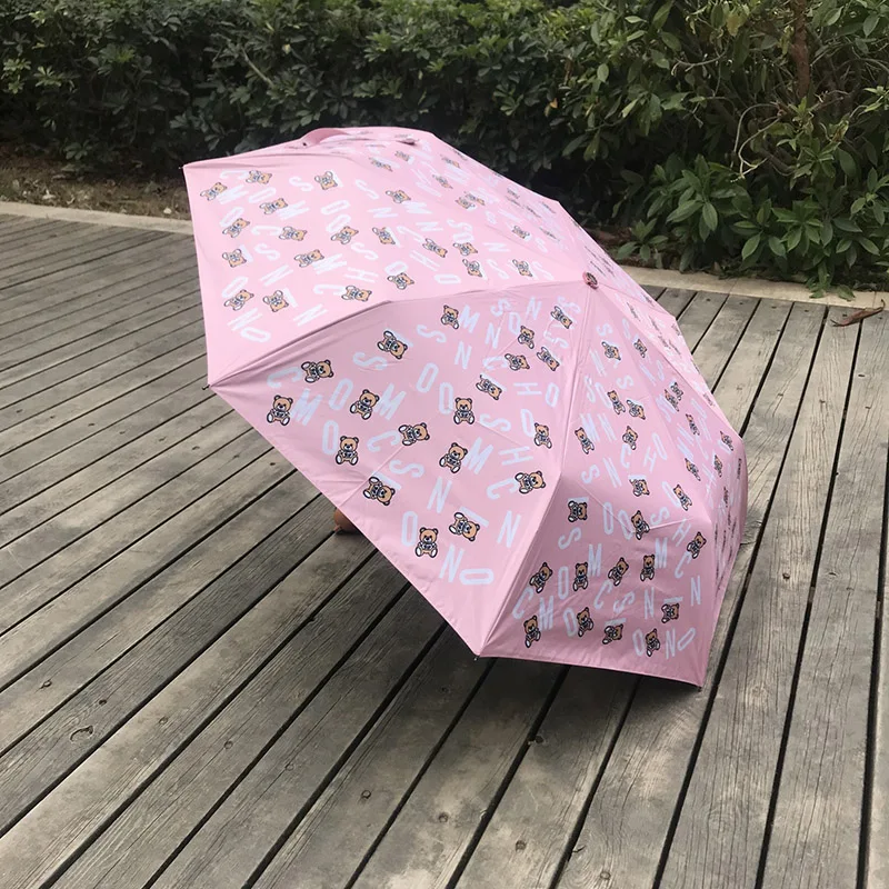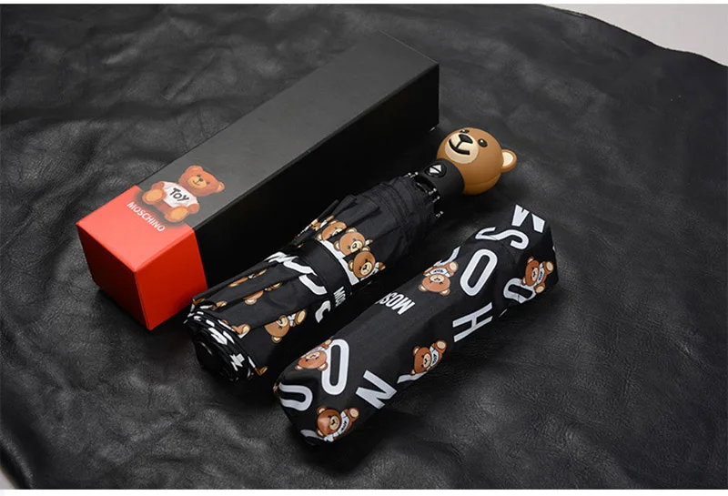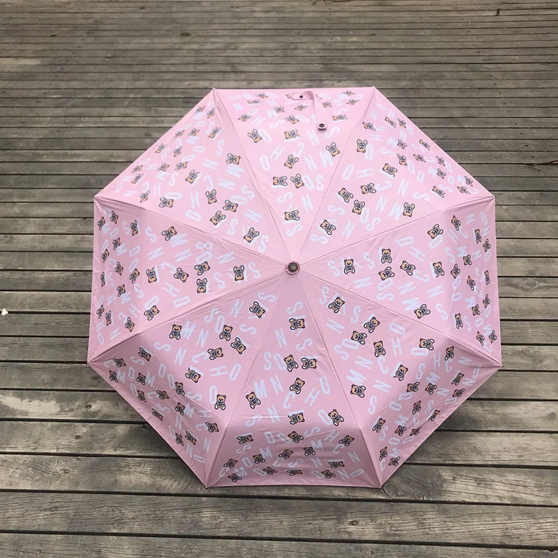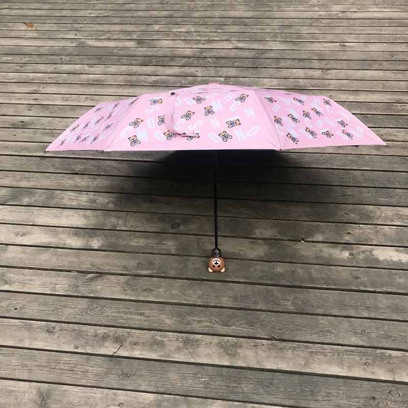 Portable Rain Sun Umbrella Automatic Windproof Women Men Children Parasol Anti UV Sunshade Three-fold Paraguas Cartoon Bear Gift