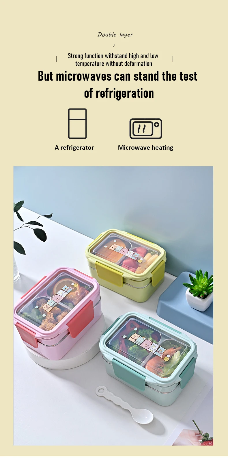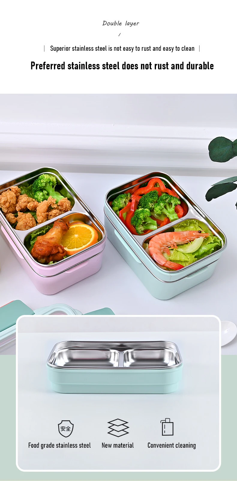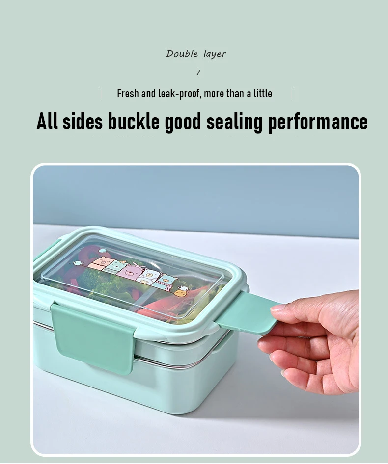 Portable Stainless Steel Lunch Box Double Layer Cartoon Food Container Box Microwave Bento Box for Kids Children Picnic School