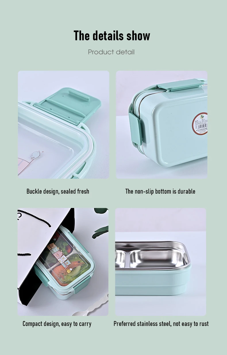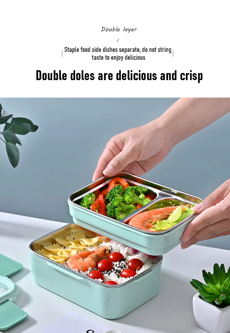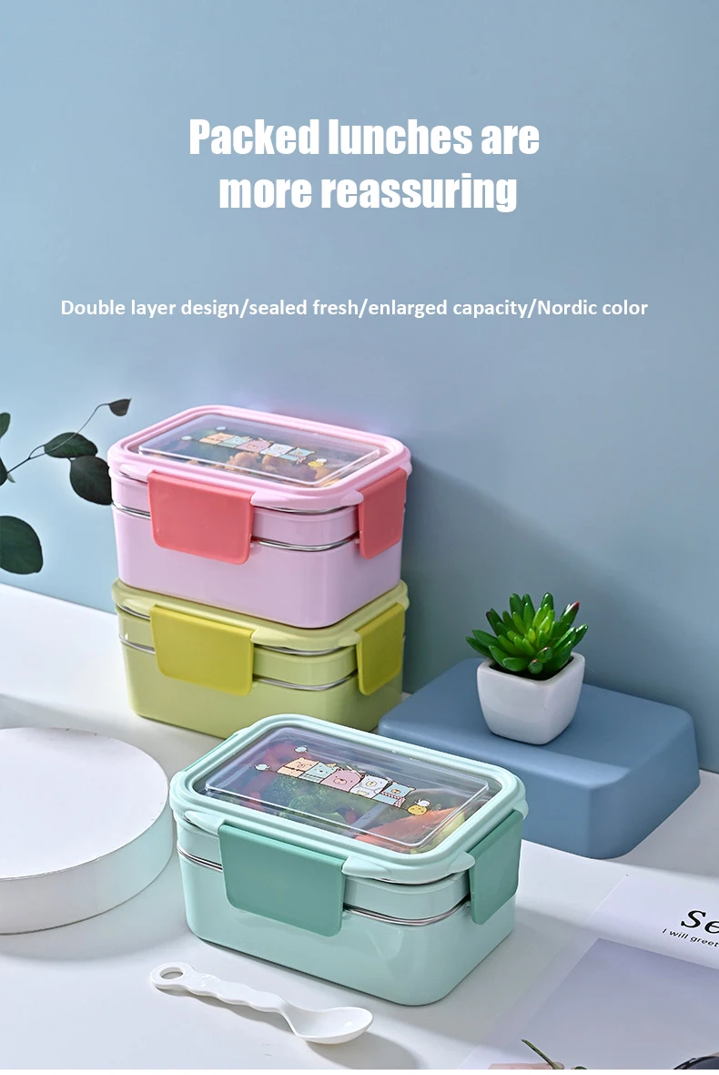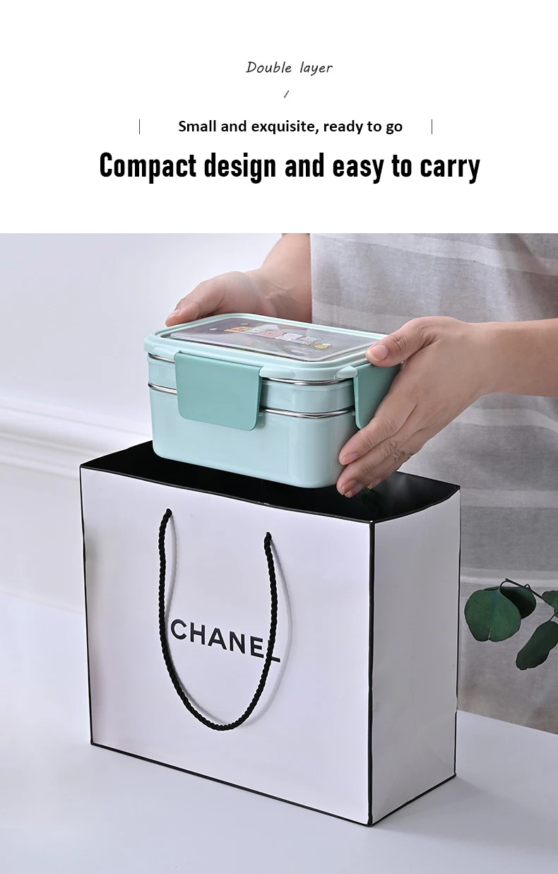 Portable Stainless Steel Lunch Box Double Layer Cartoon Food Container Box Microwave Bento Box for Kids Children Picnic School