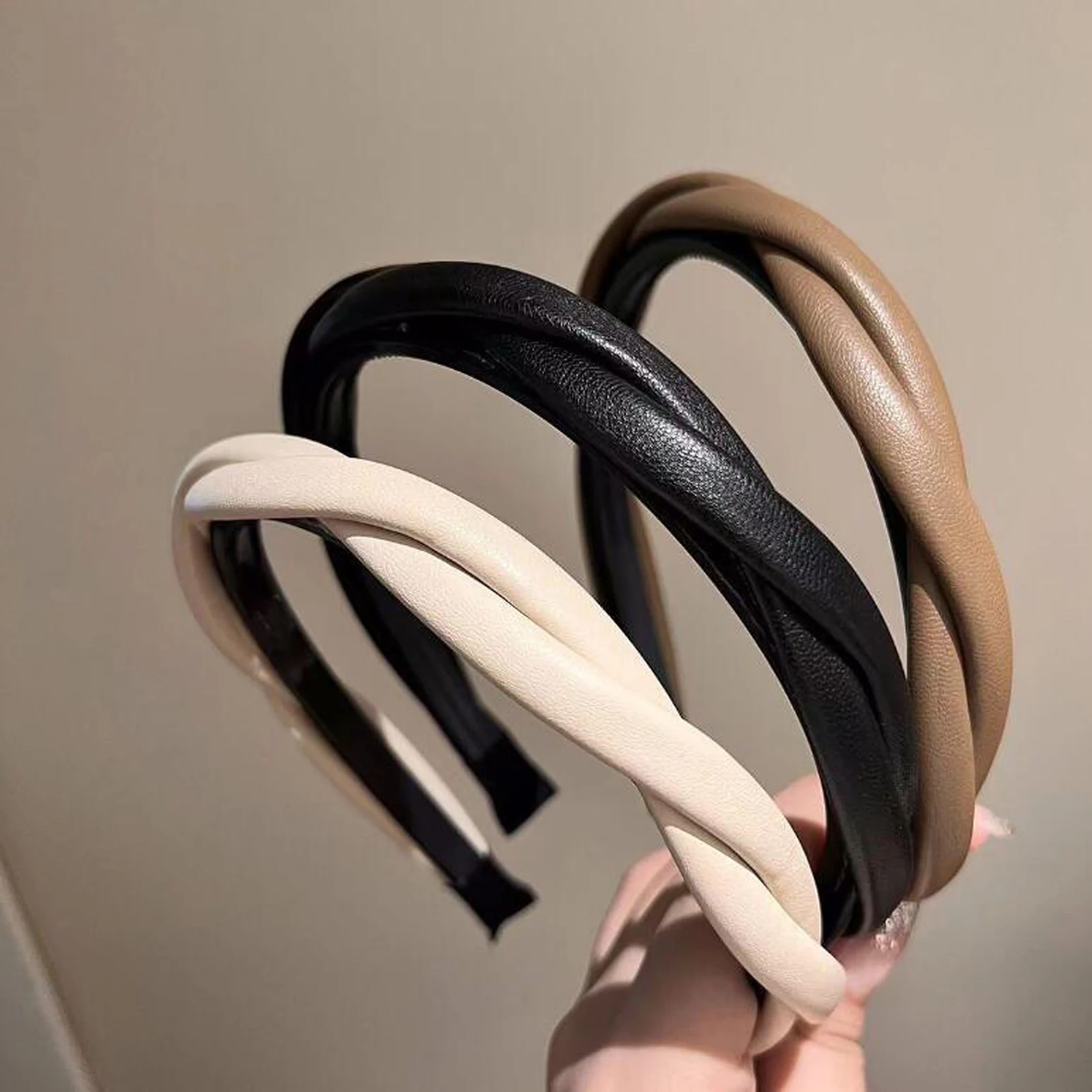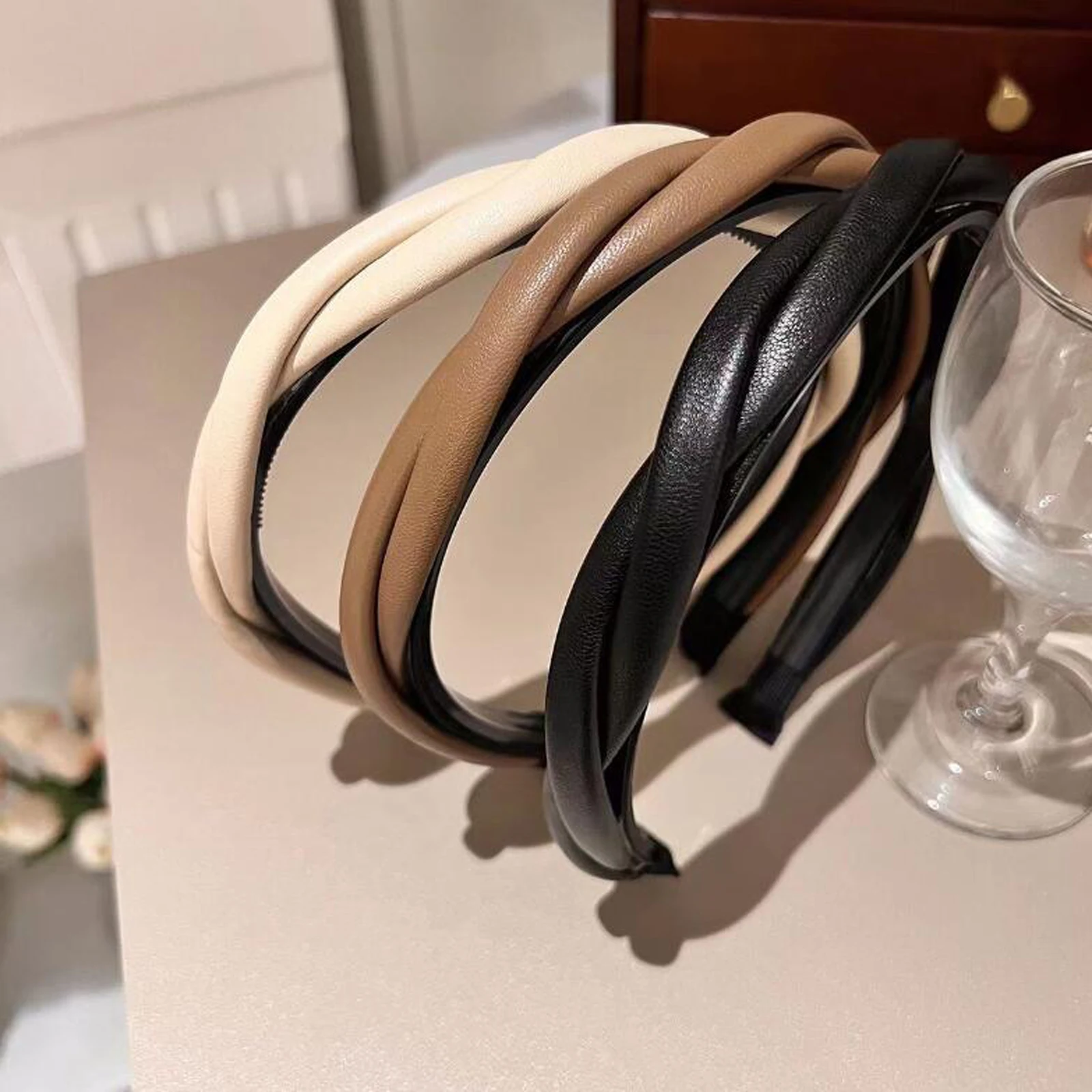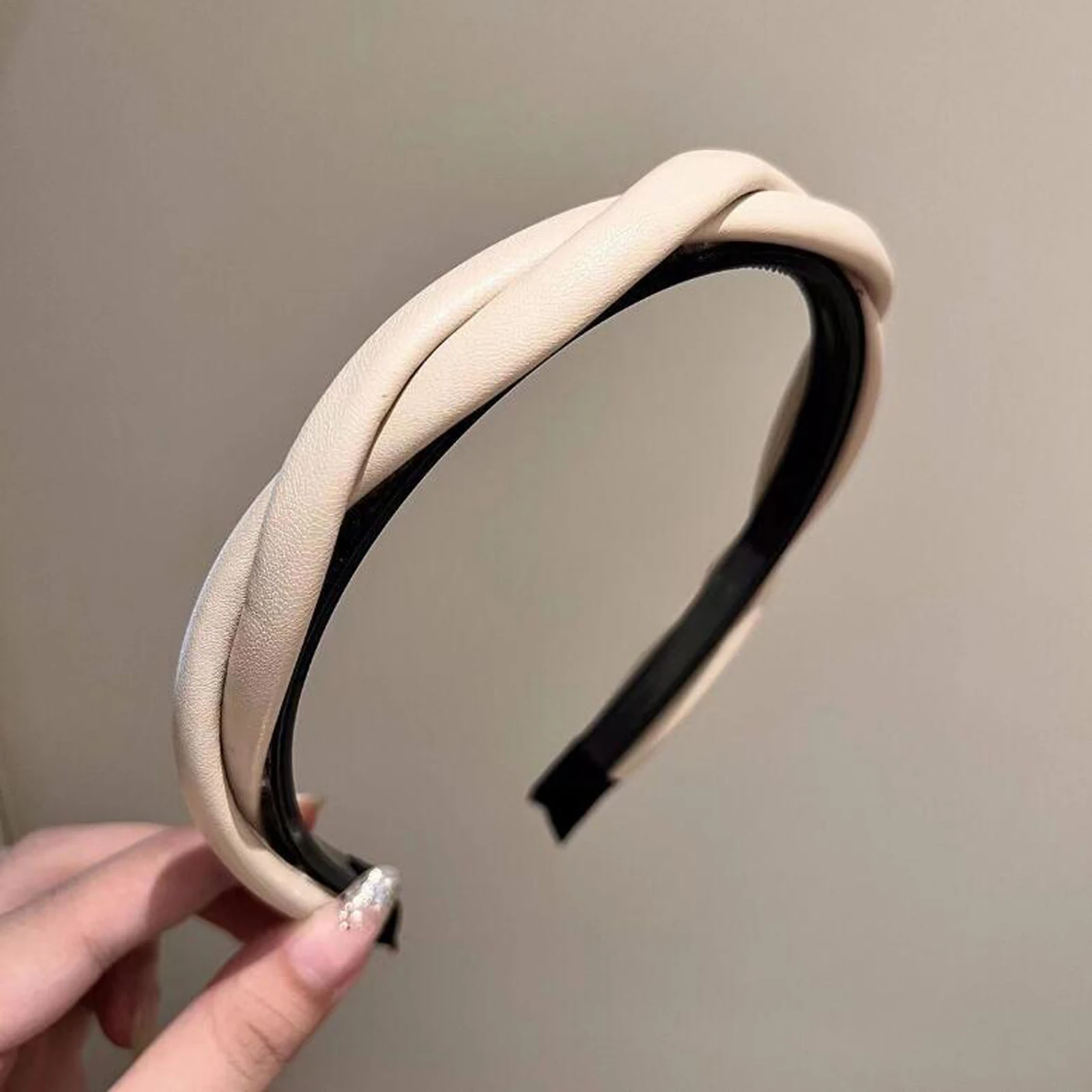 PROLY New Fashion Women Headband PU Leather Hairban Casual Braided Headwear Girls Vintage Turban Autumn Hair Accessories