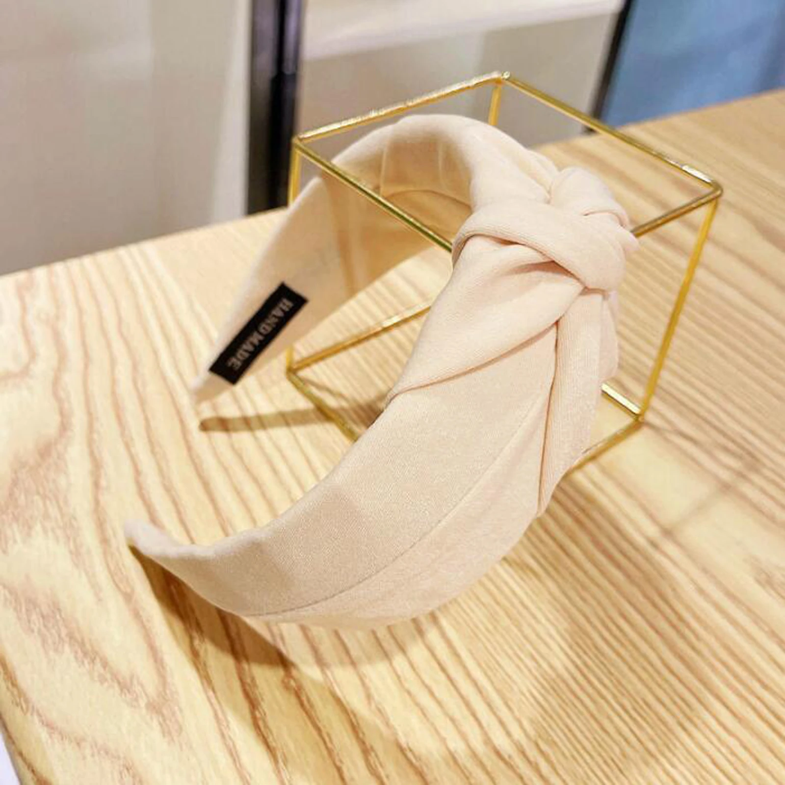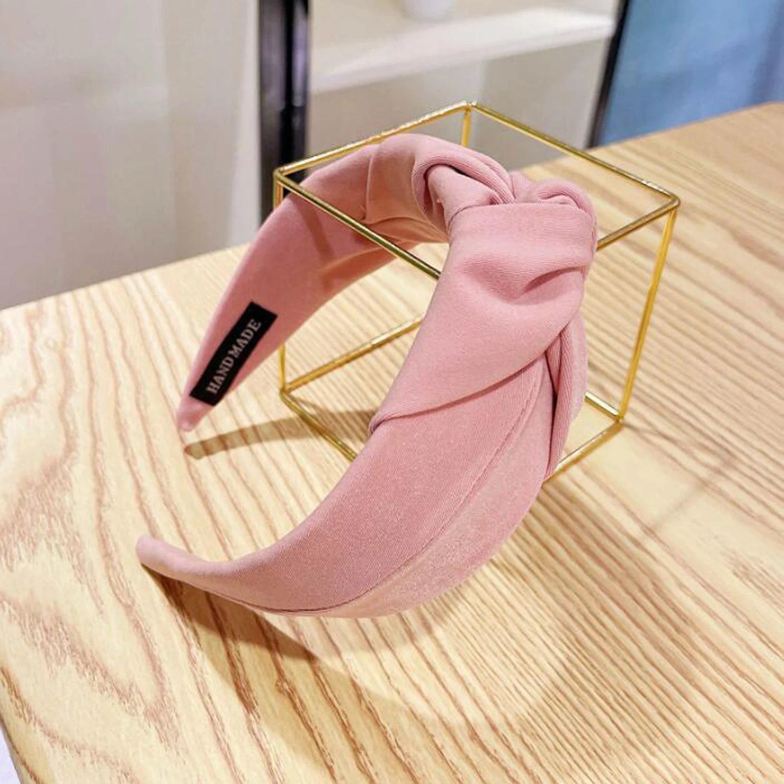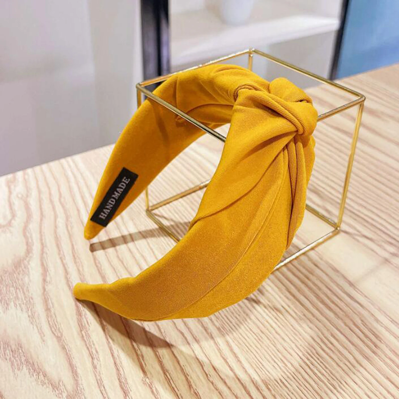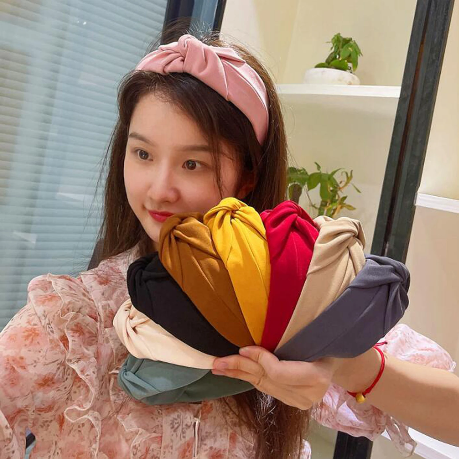 PROLY New Fashion Women Headband Solid Color Wide Side Hairband Center Knot Casual Turban Adult Headwear Hair Accessories