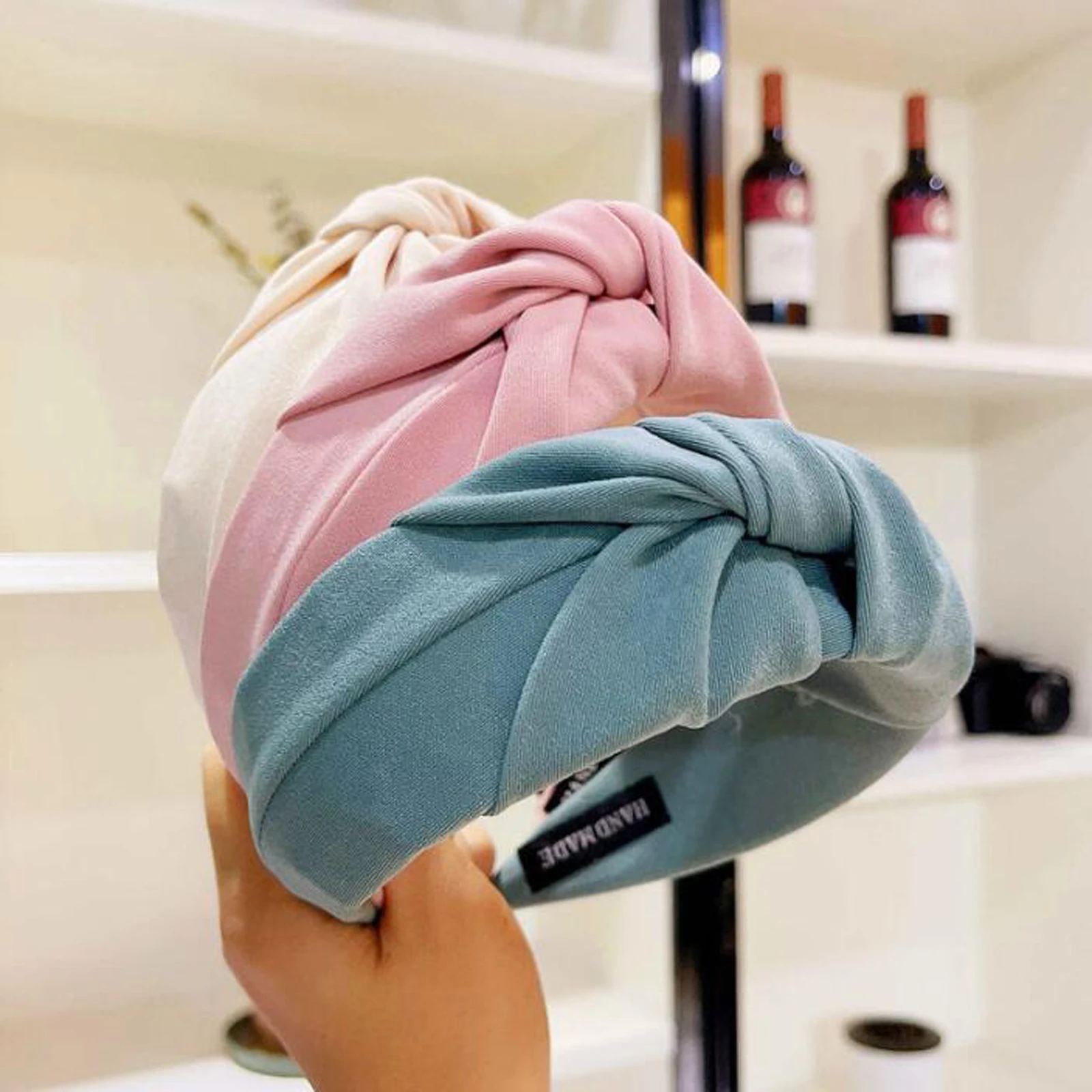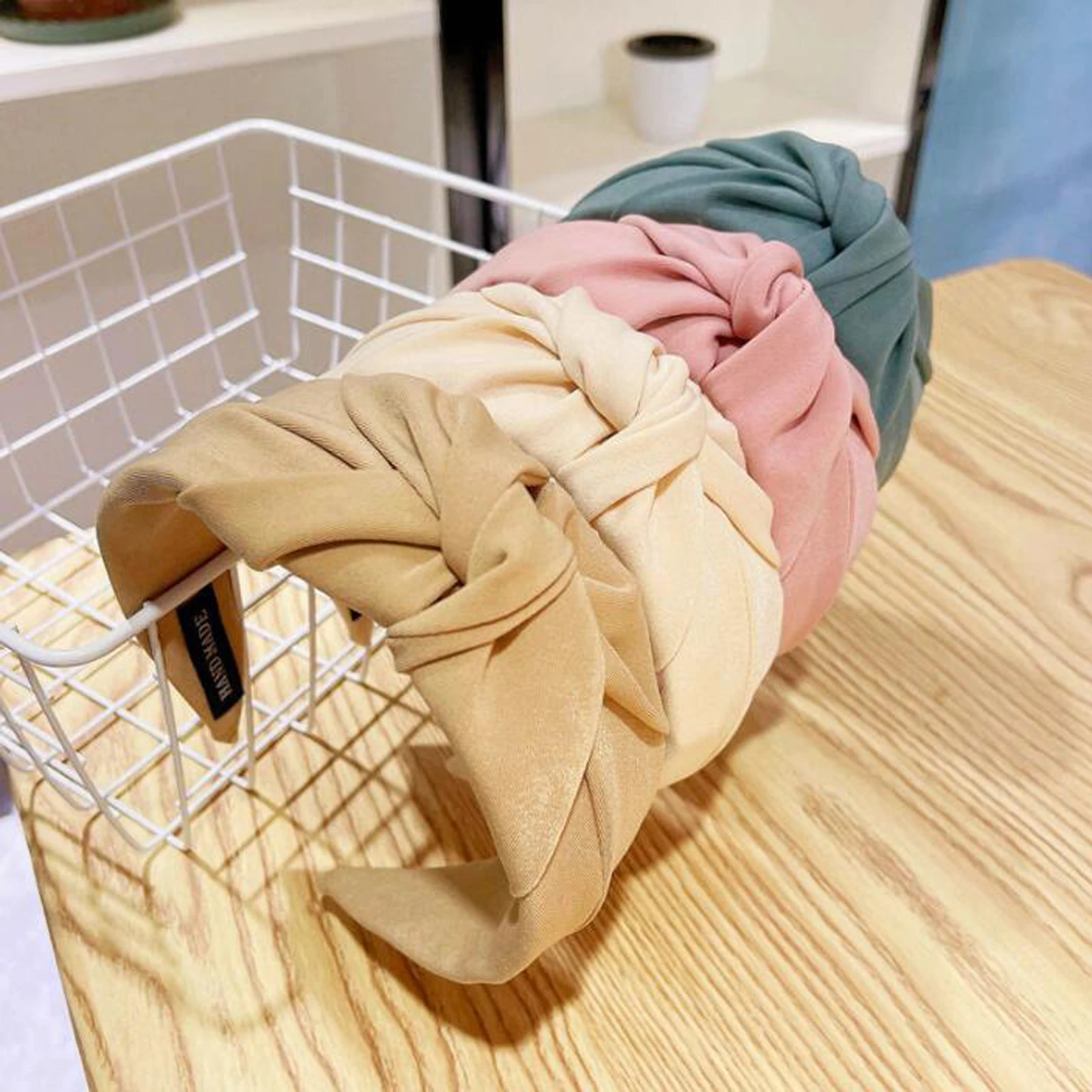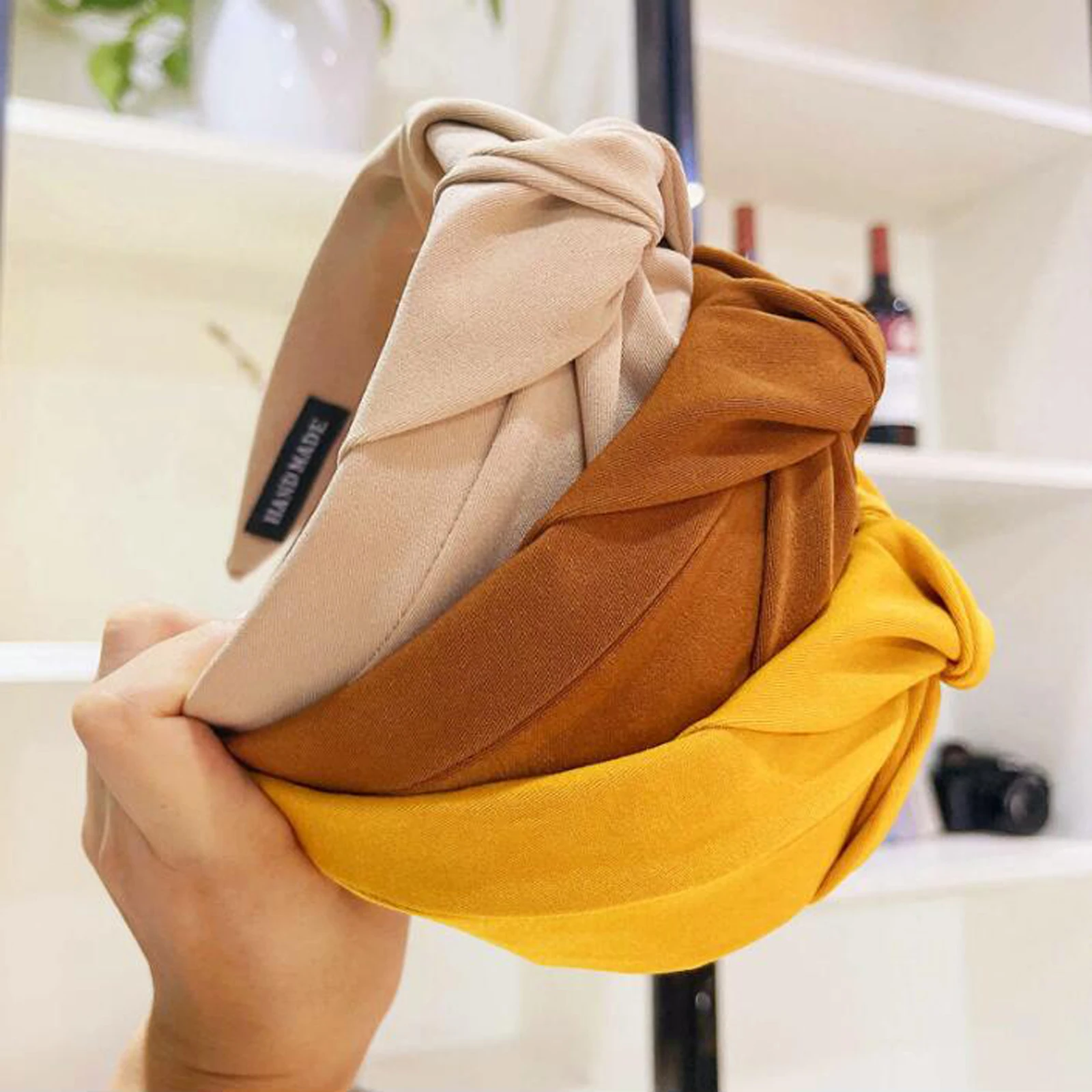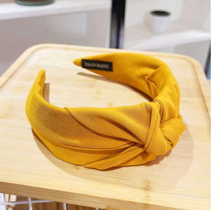 PROLY New Fashion Women Headband Solid Color Wide Side Hairband Center Knot Casual Turban Adult Headwear Hair Accessories