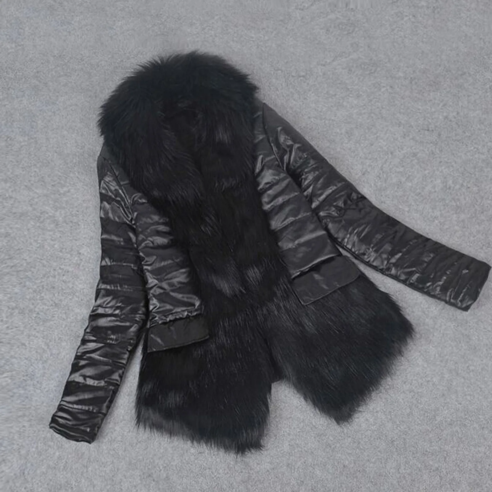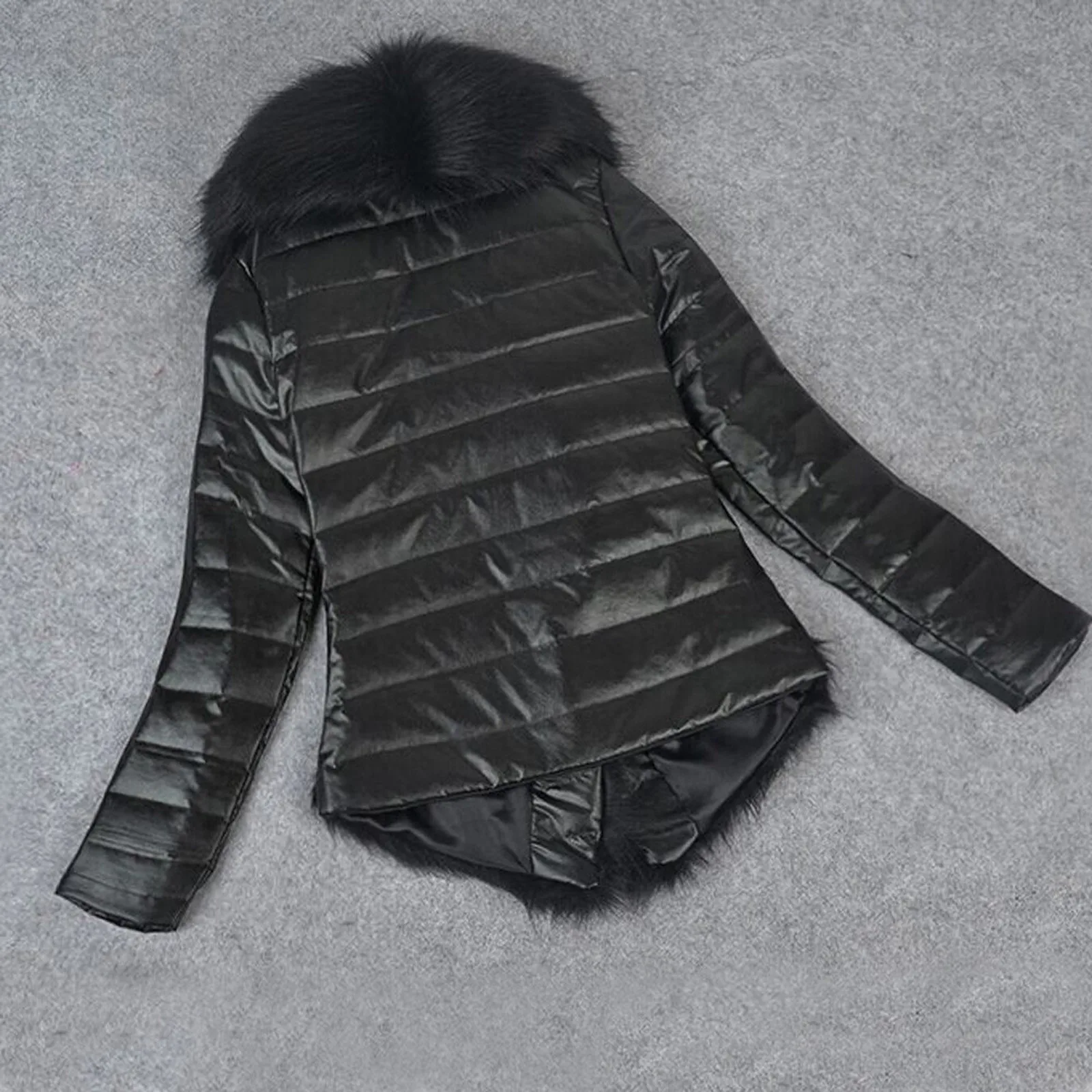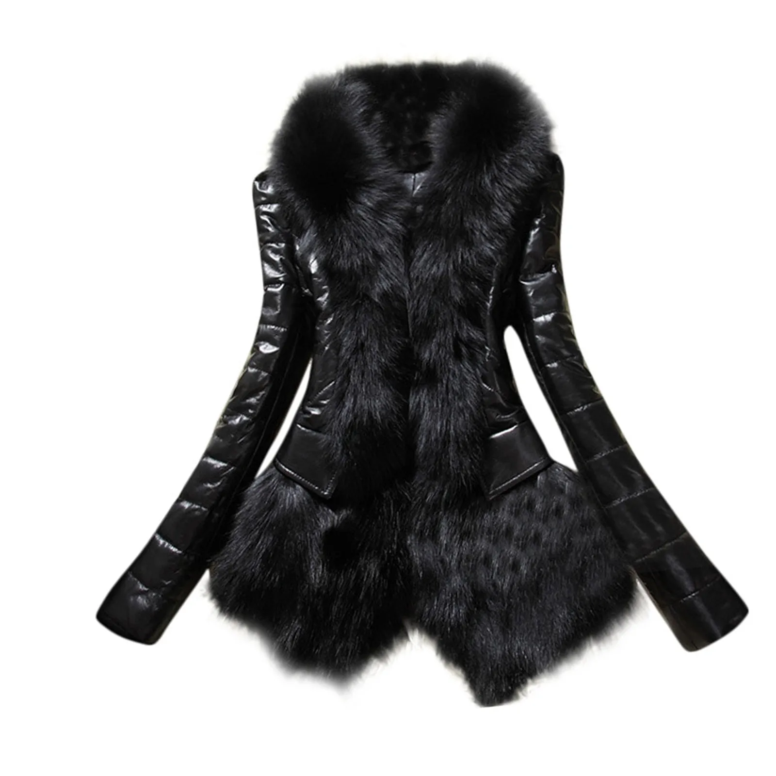 Women Long Sleeve Warm Furs Collar Coat Leather Thick Jacket Overcoat