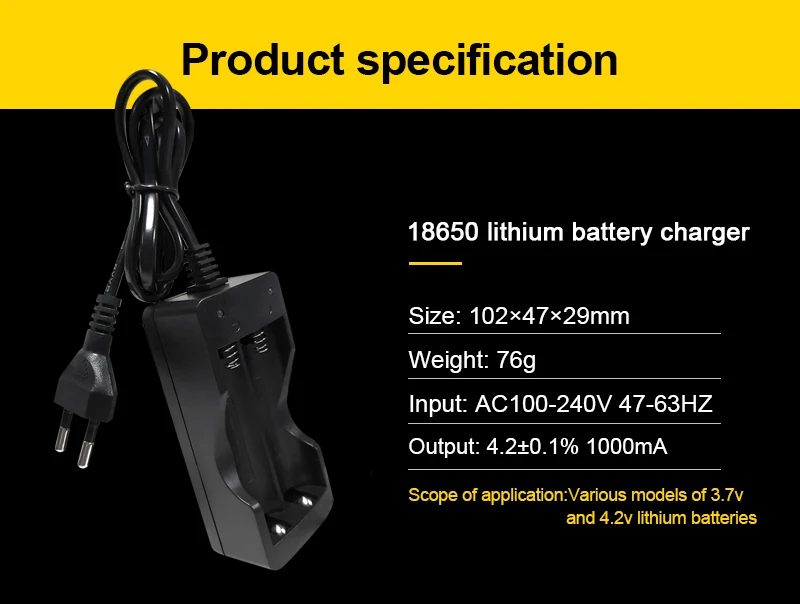 Designed for 18650 Ni-MH/Ni-Cd rechargeable batteries Package include: