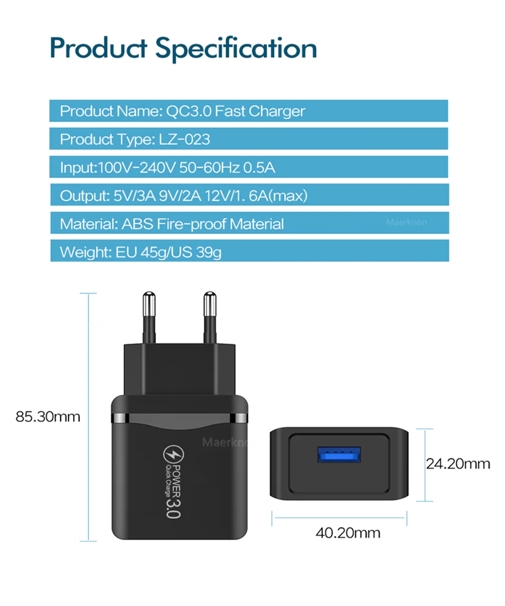 - Model Number - Quick Charge 4.0 3.0 USB Charger, Wall Charger