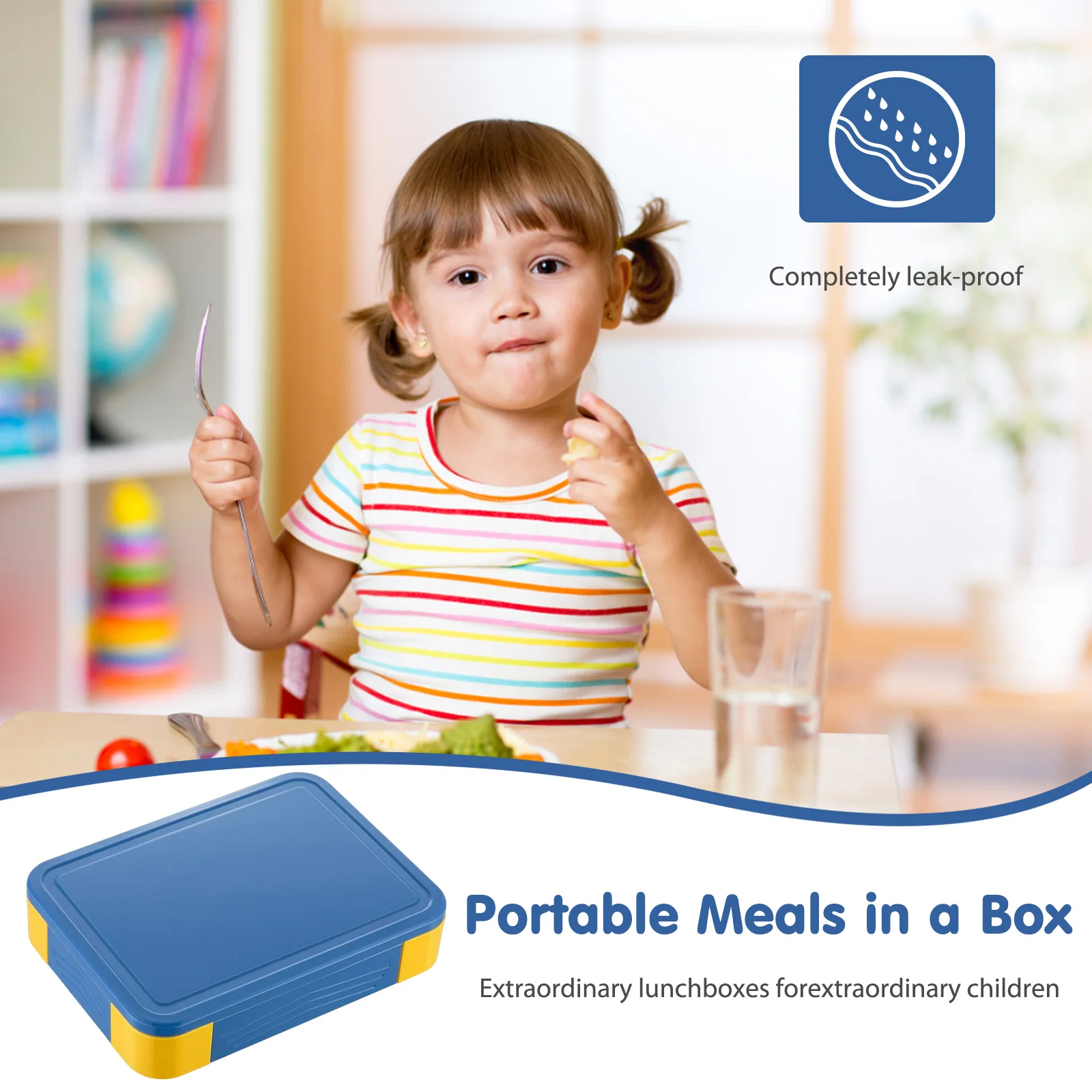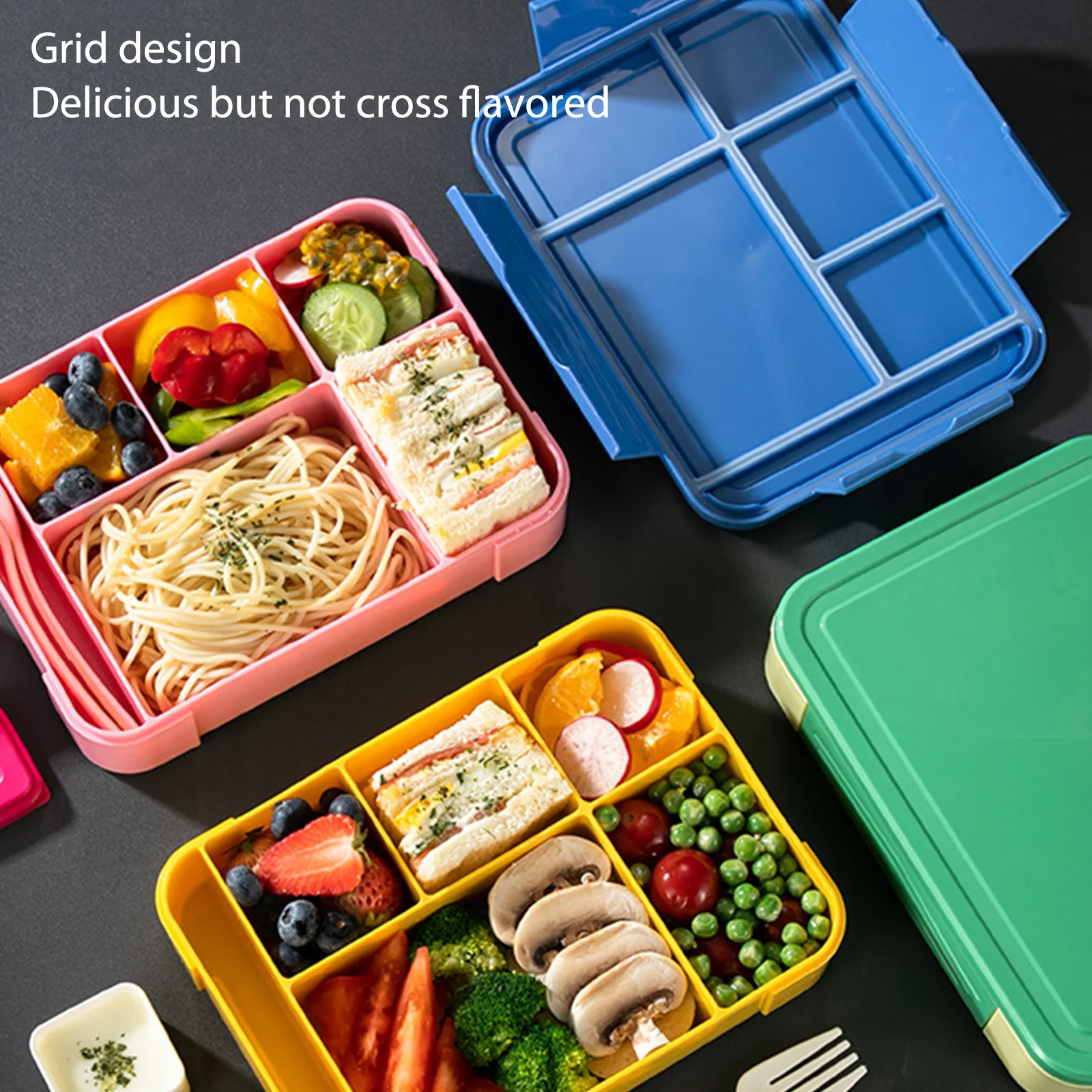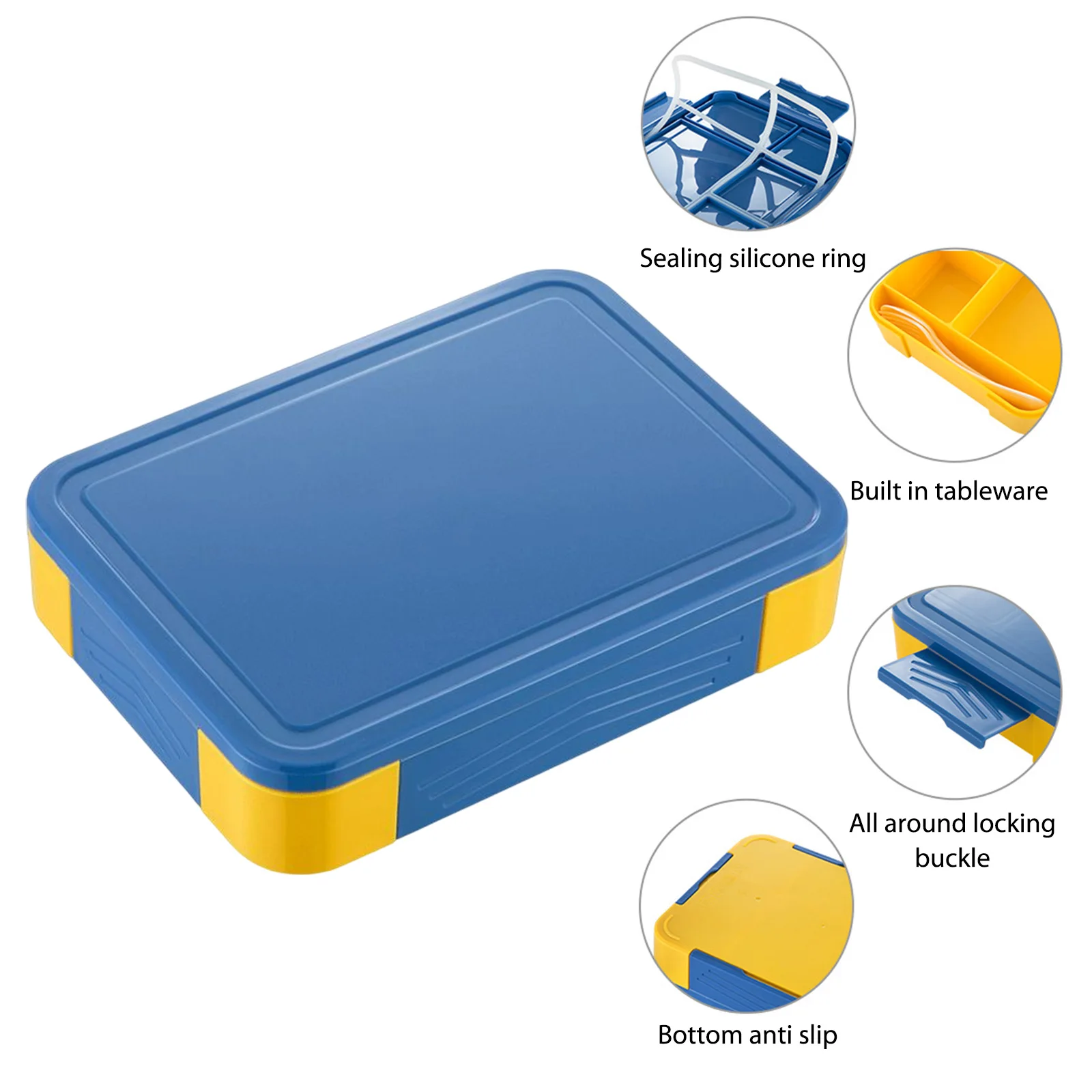 Rectangle Bento Box Compartment Single-Layer Food Storage Container Leakproof Built-in Tableware Microwavable for Office Workers Note: