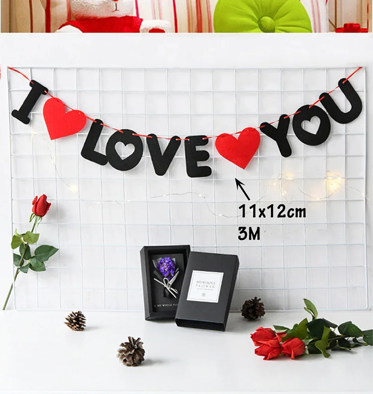 Red Heart Letters Romantic Non-woven I Love You Banner Wedding Decoration Pendant Garland Photo Props Valentine Party Supplies