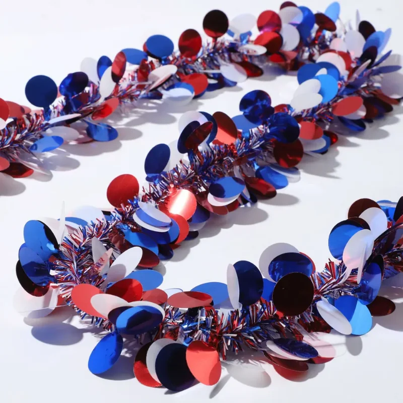 Product Name Red White Blue Circle Tinsel Festooning Mixed Color Metallic Chunky Glitter Garland for Independence Day 4th of July Decoration