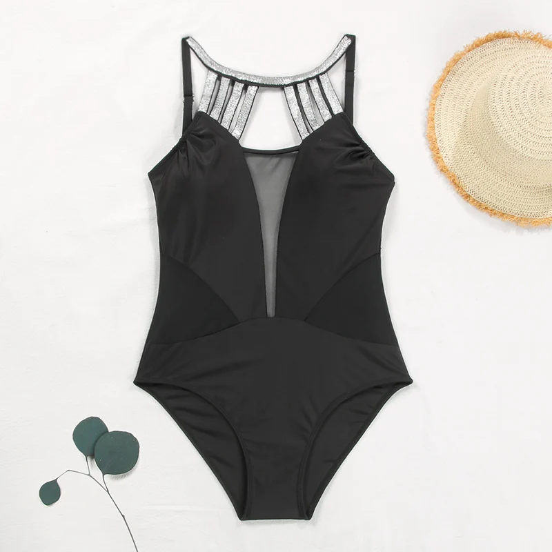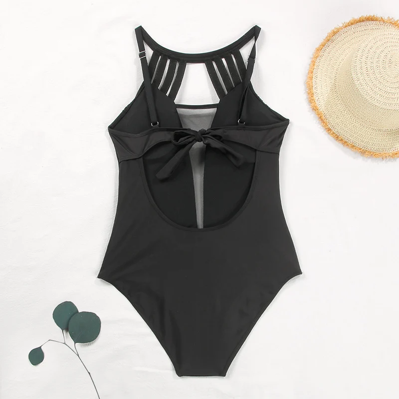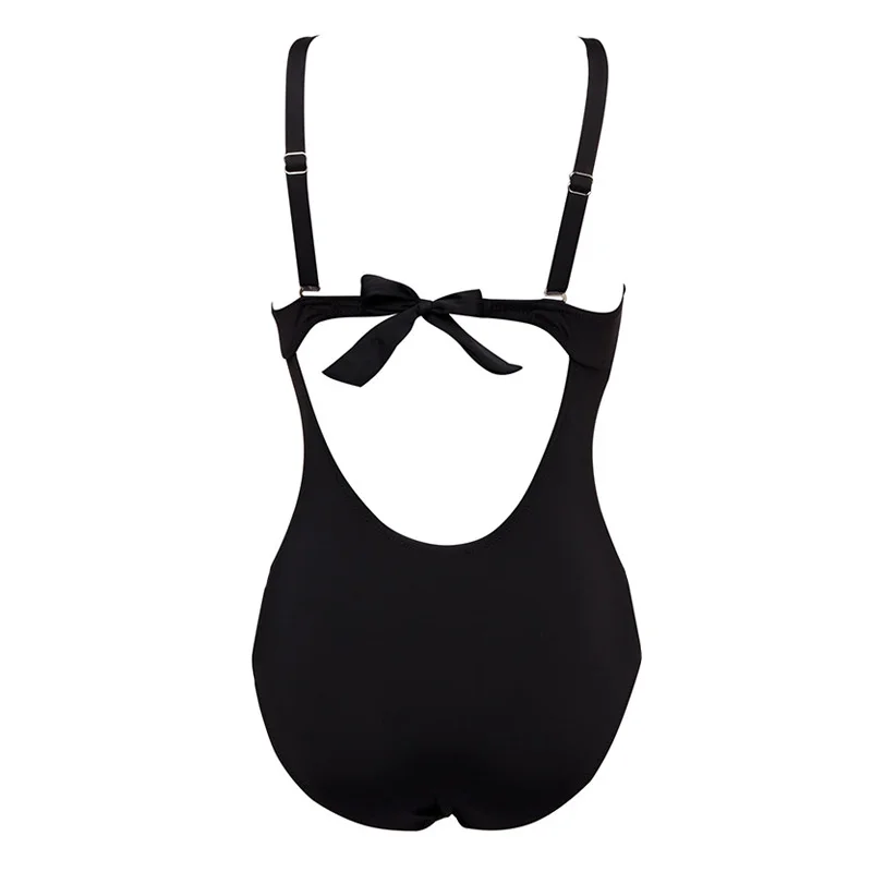 Rinabe Deep V Neck Swimsuit High Belt Bikini Bandage Swimwear Print One-Piece-Suits Bathing Suit Women Biquini Beachwear Bikinis