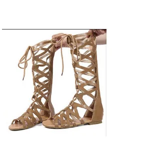 Roman Gladiator Bandage Sandals Women Knee High flat sandalias botas femininas Women Shoes Girls hollow Ankle Boot hjm7