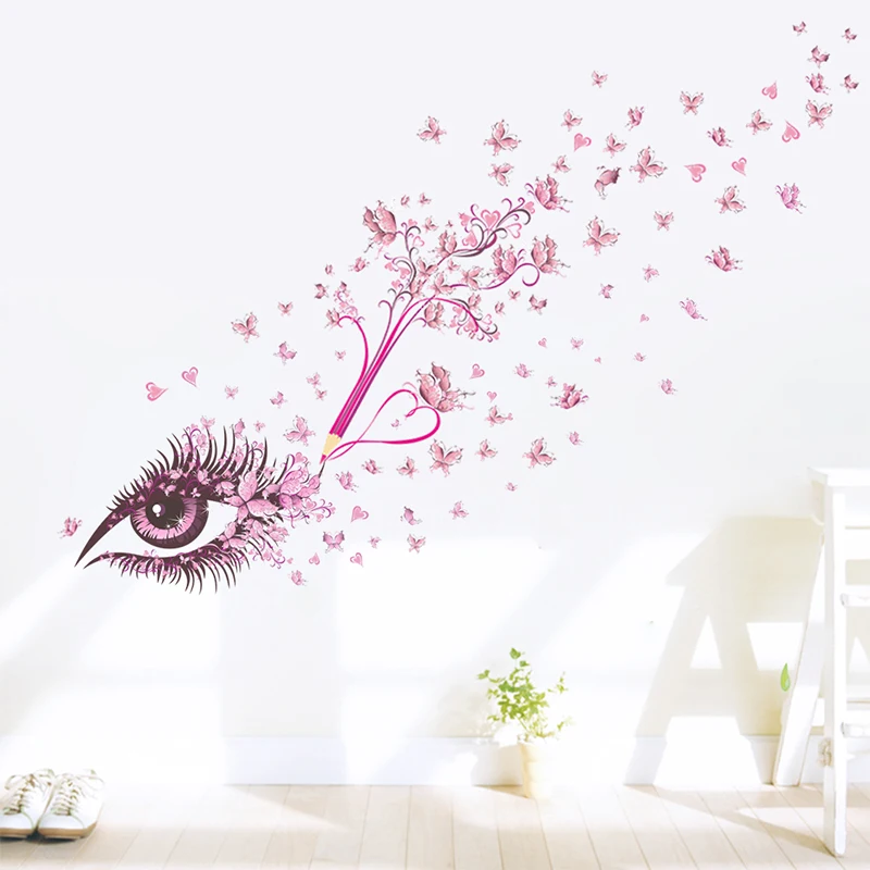 Romantic Fairy Girl Butterfly Eyes Wall Stickers Decals Home Living Room Bedroom Decoration Poster Mural Gifts