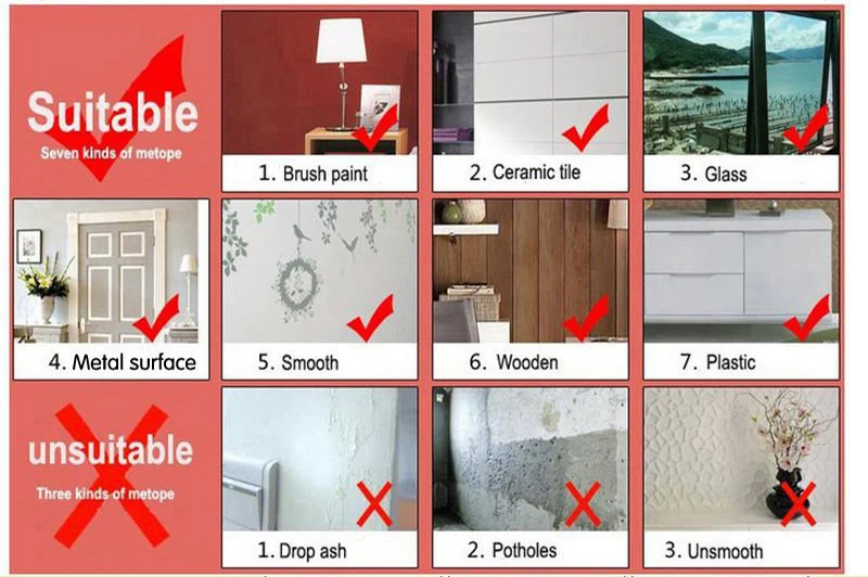 - Where to apply - Smooth and clean wall glass metal wood etc.