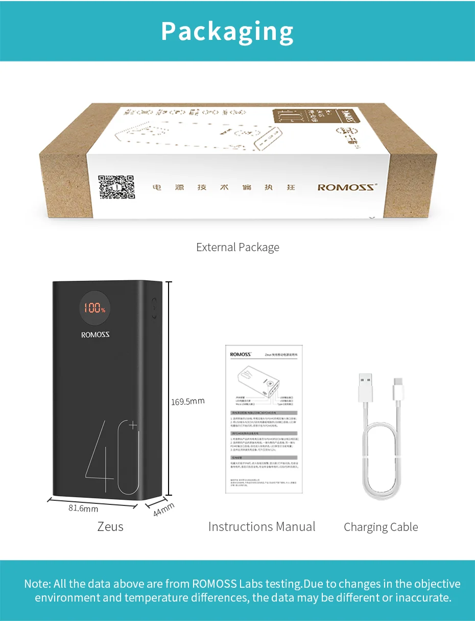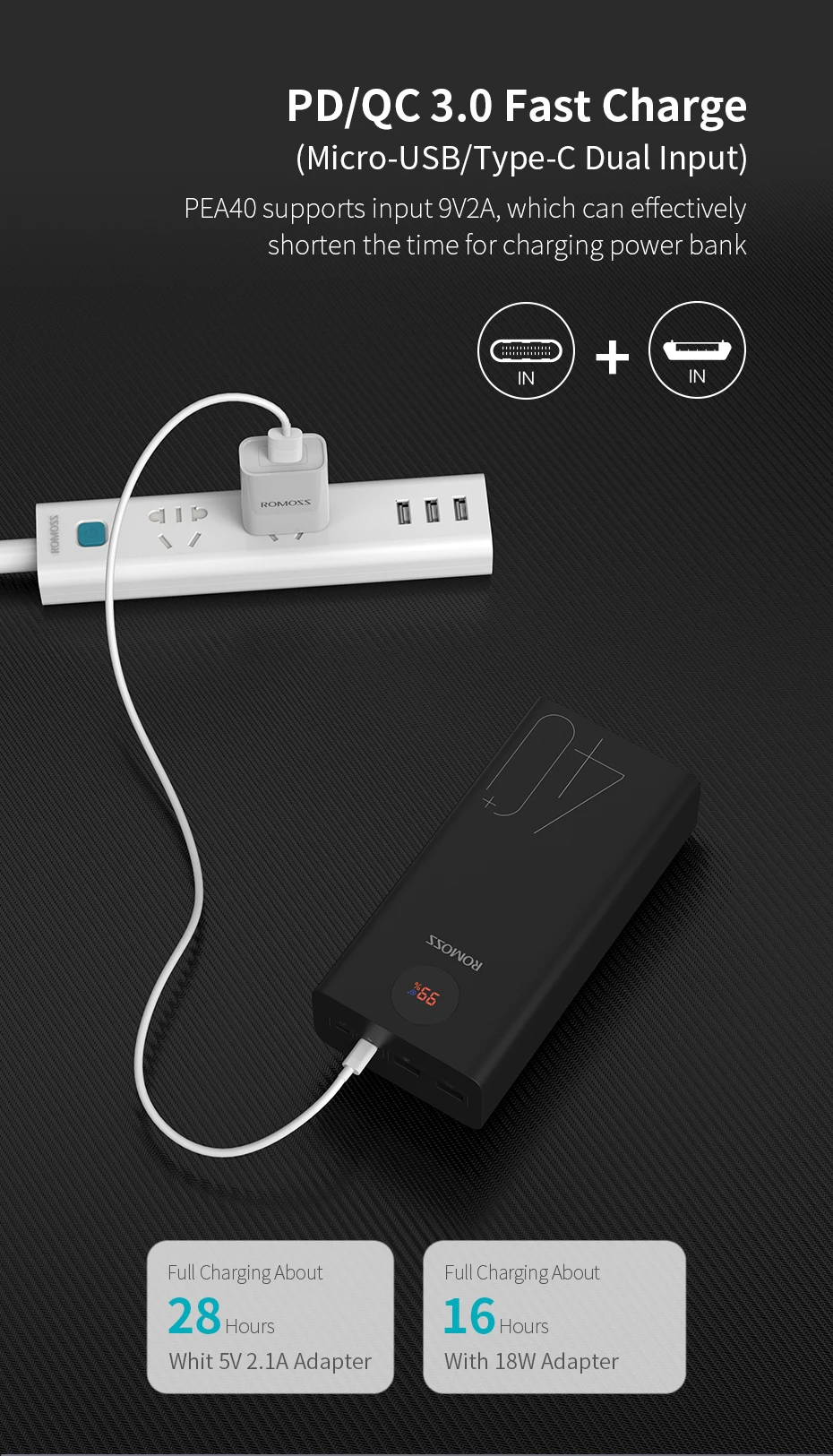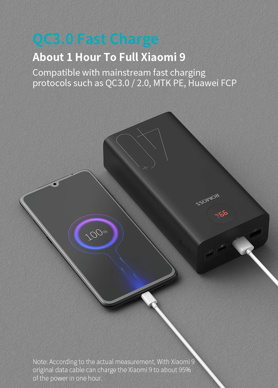 Romoss Power Bank 40000mAh Portable Charging Poverbank Mobile Phone External Battery Fast Charger Powerbank For IPhone 13 Xiaomi