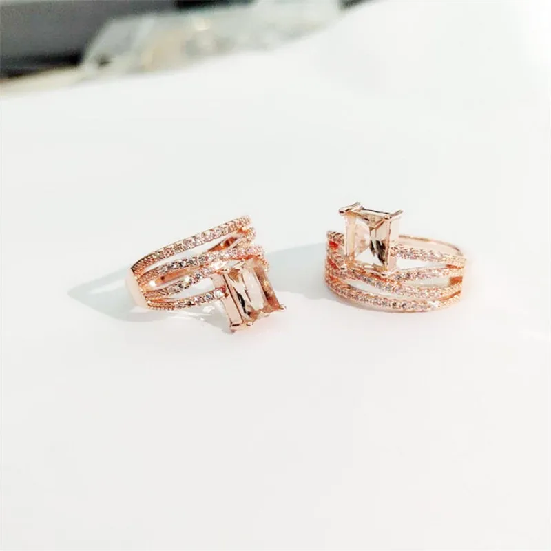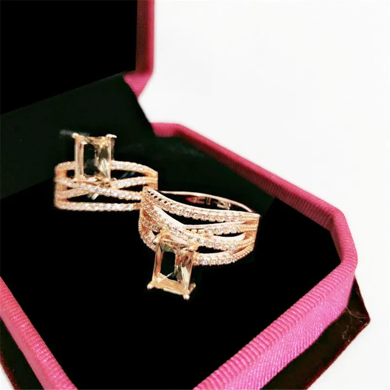 Rose Gold Square Cubic Zirconia Rings For Women Vintage Jewelry Finger Ring Female Boho Wedding Rings Women Engagement Ring Gift