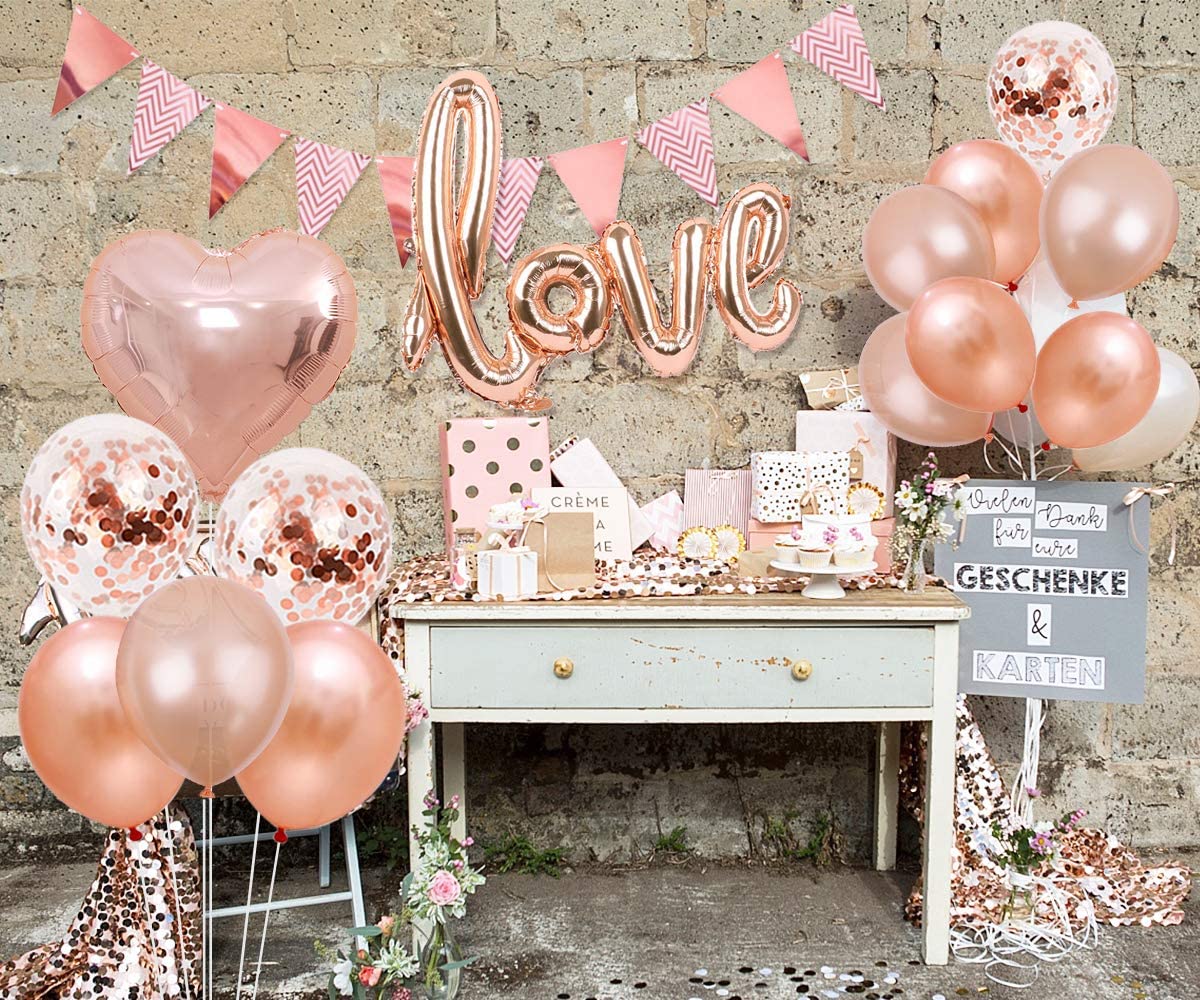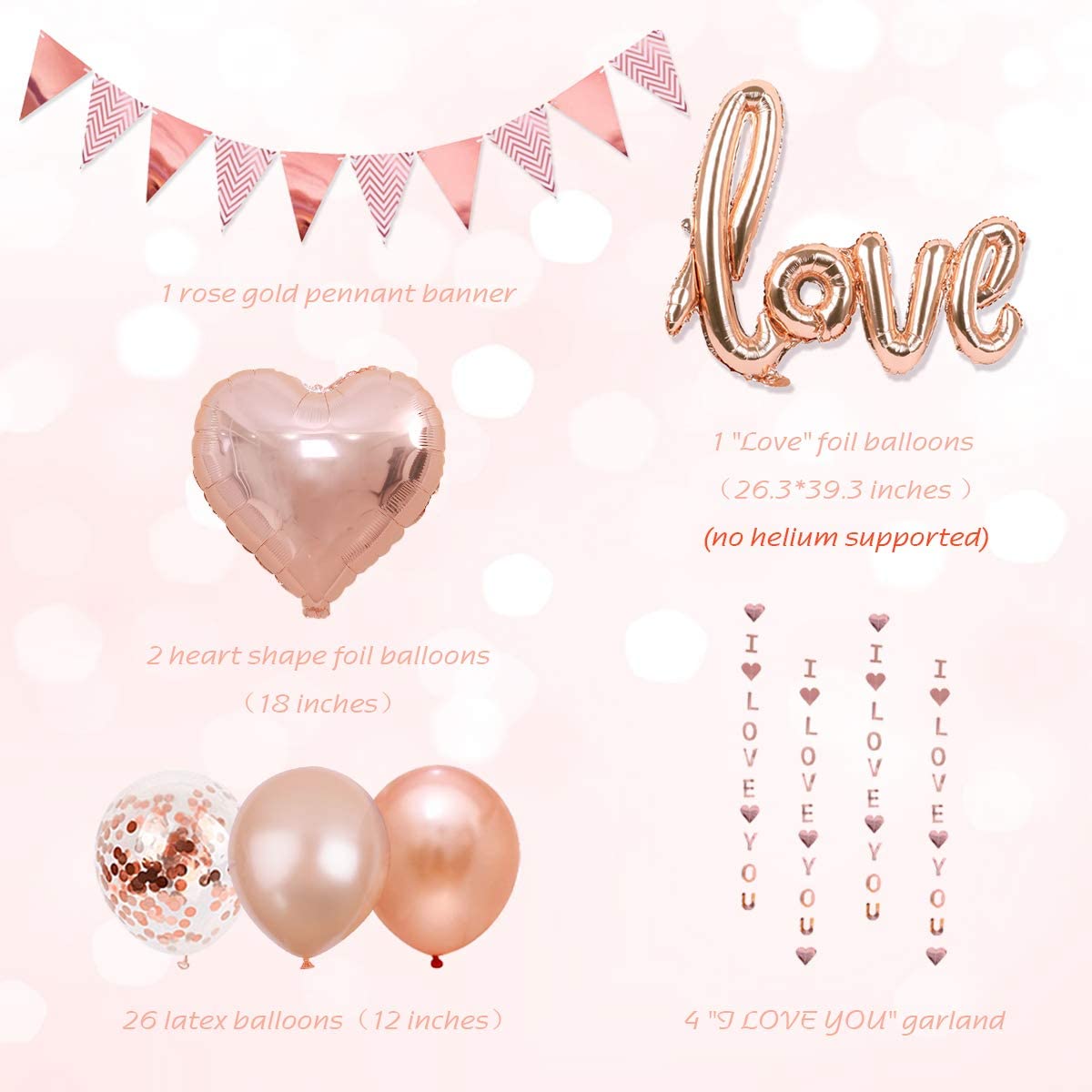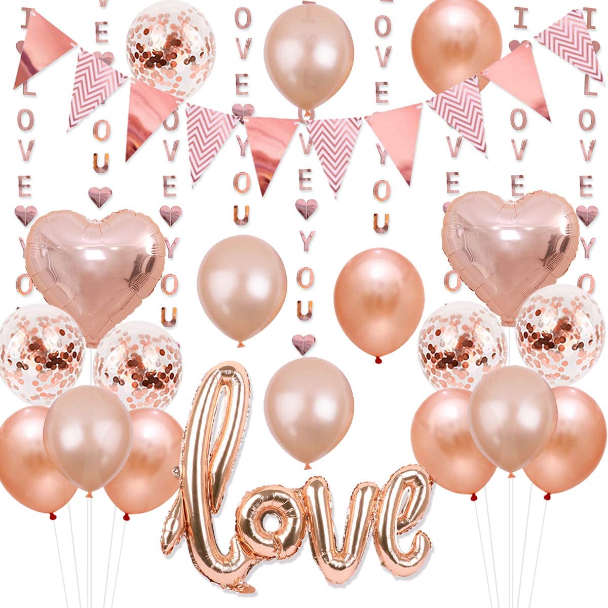 Rose Gold Party Decorations Love Heart Balloons for Valentines Wedding Engagement Baby Shower Bachelorette Hen Party Decorations
