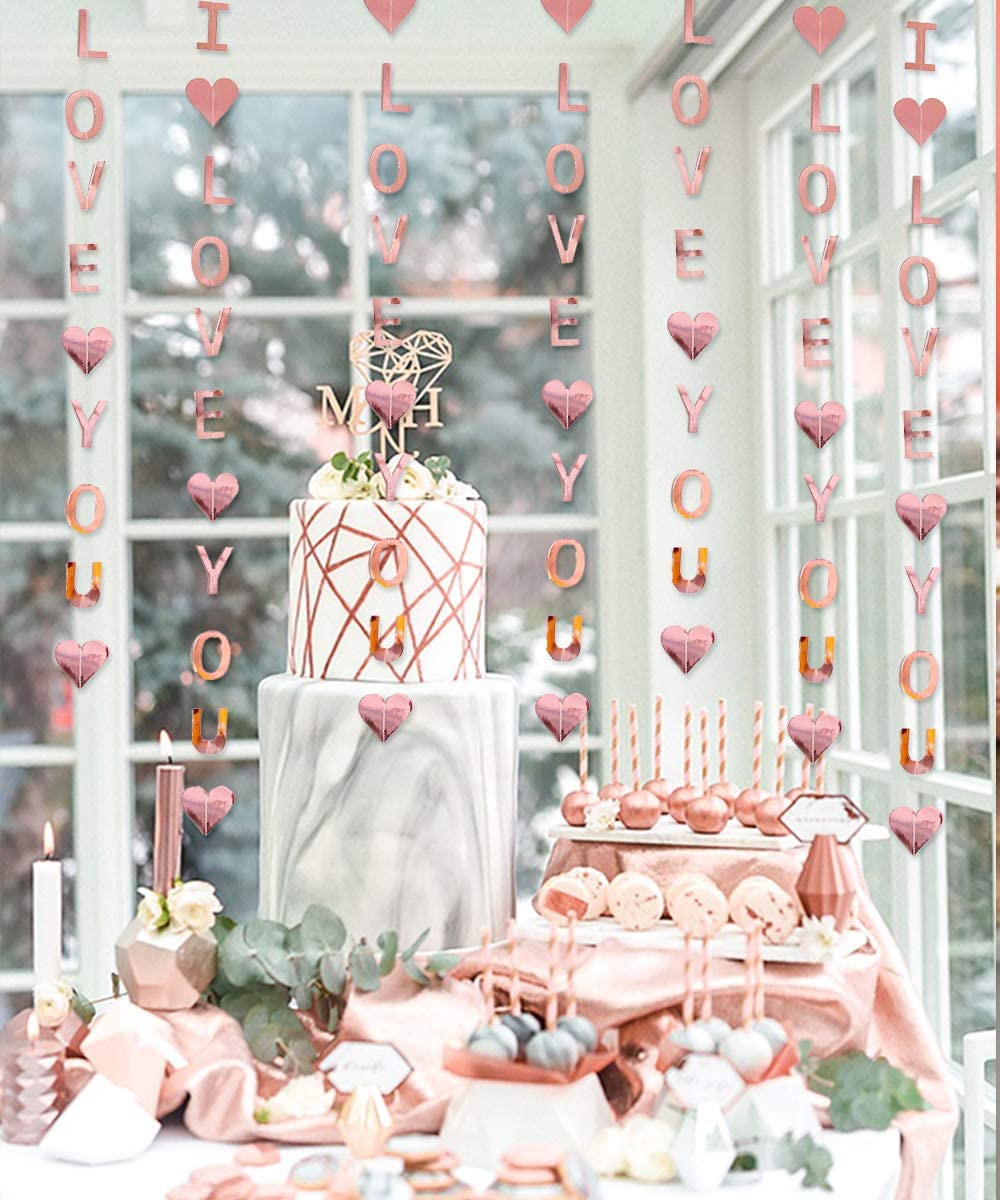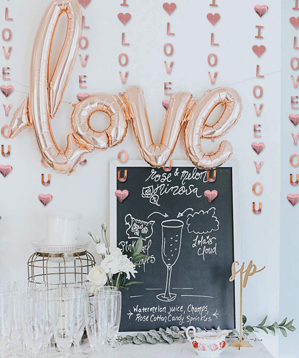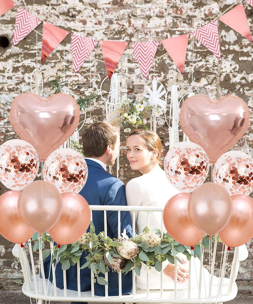 Rose Gold Party Decorations Love Heart Balloons for Valentines Wedding Engagement Baby Shower Bachelorette Hen Party Decorations