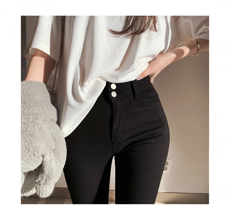 S-L New High Waist Hips Tight Jeans Female Spring Summer Slim Feet Pants White Nine Pants Solid Long Trousers Streetwear Jeans