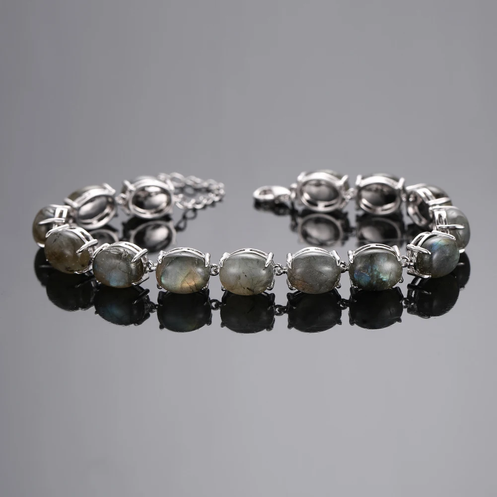 S925 Sterling Silver Bracelet Turquoise Amethyst Labradorite Bracelet Natural Gemstone Jewelry Party Anniversary Engagement Gift
