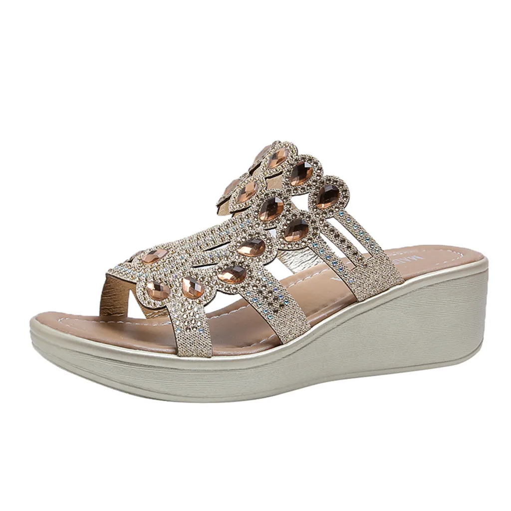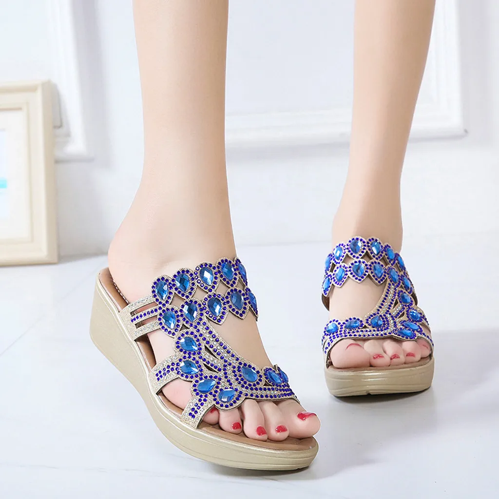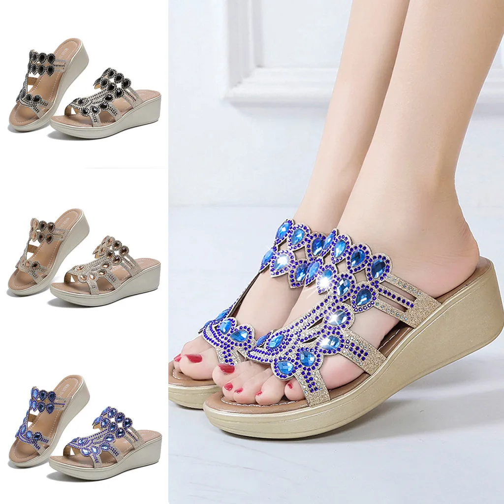 SAGACE Woman Platform Wedges Slippers Sandals Luxury Crystal Summer Ladies Bohemian Beach Thick Bottom Heels Slippers Casual