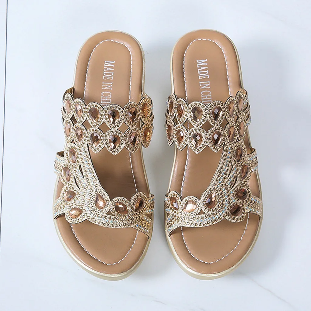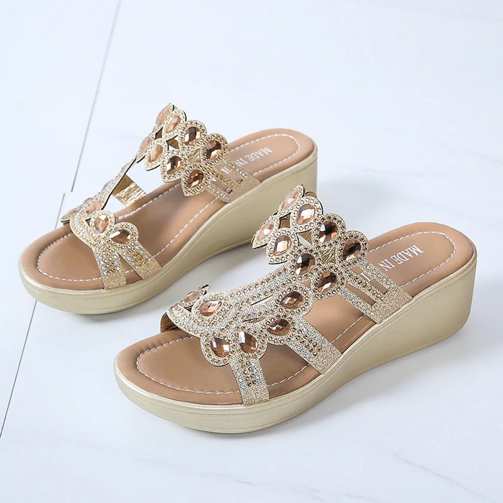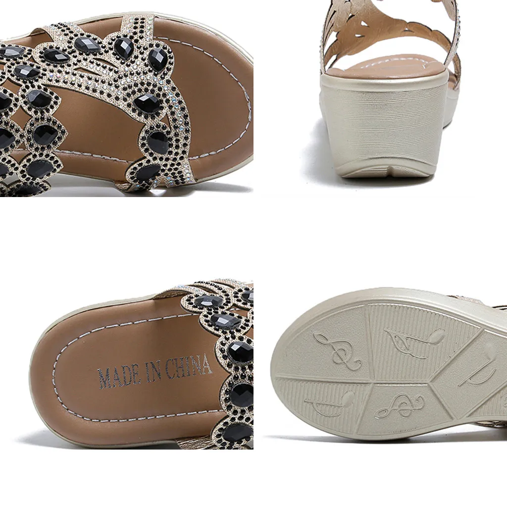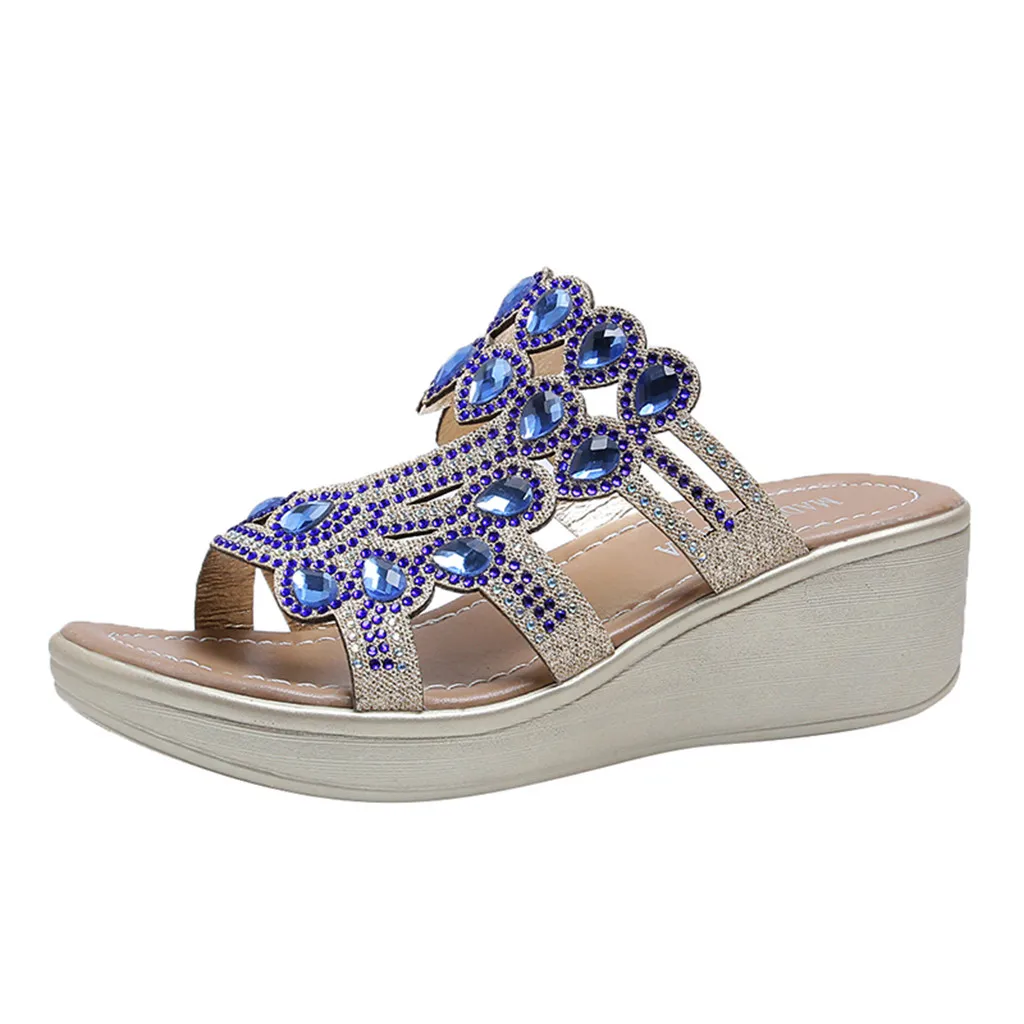 SAGACE Woman Platform Wedges Slippers Sandals Luxury Crystal Summer Ladies Bohemian Beach Thick Bottom Heels Slippers Casual