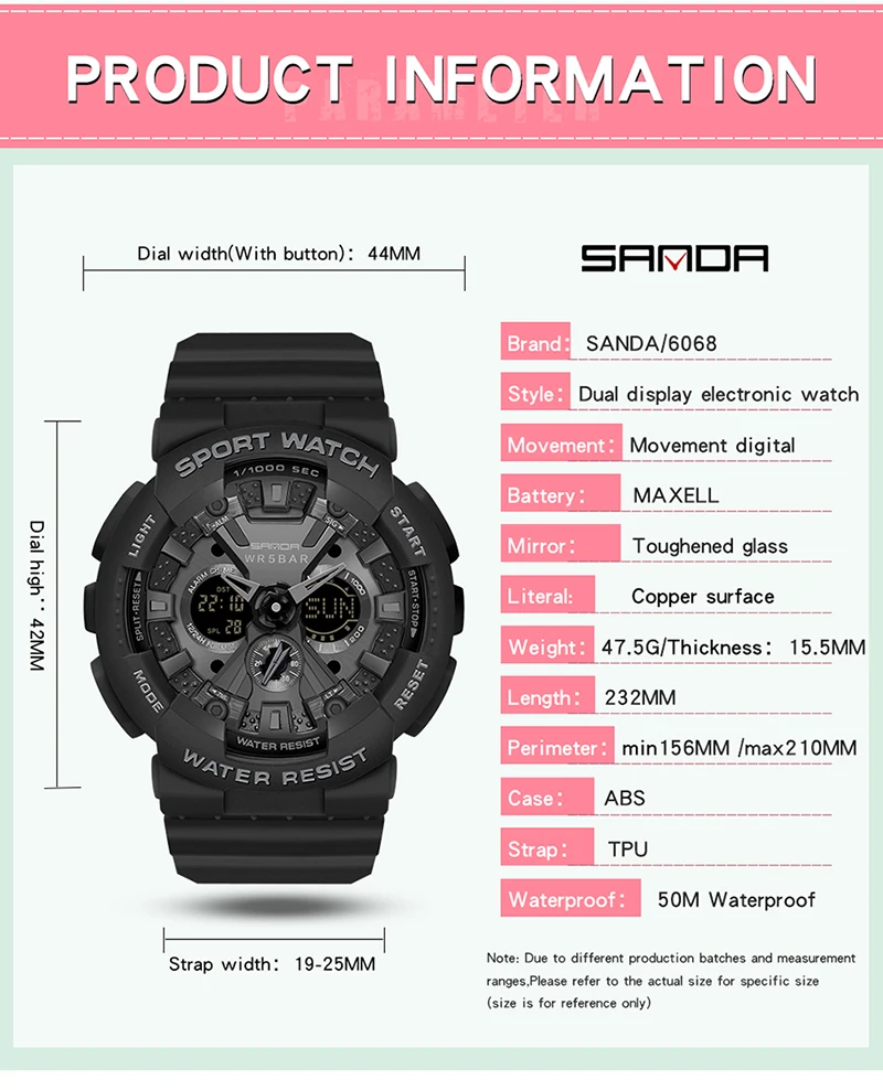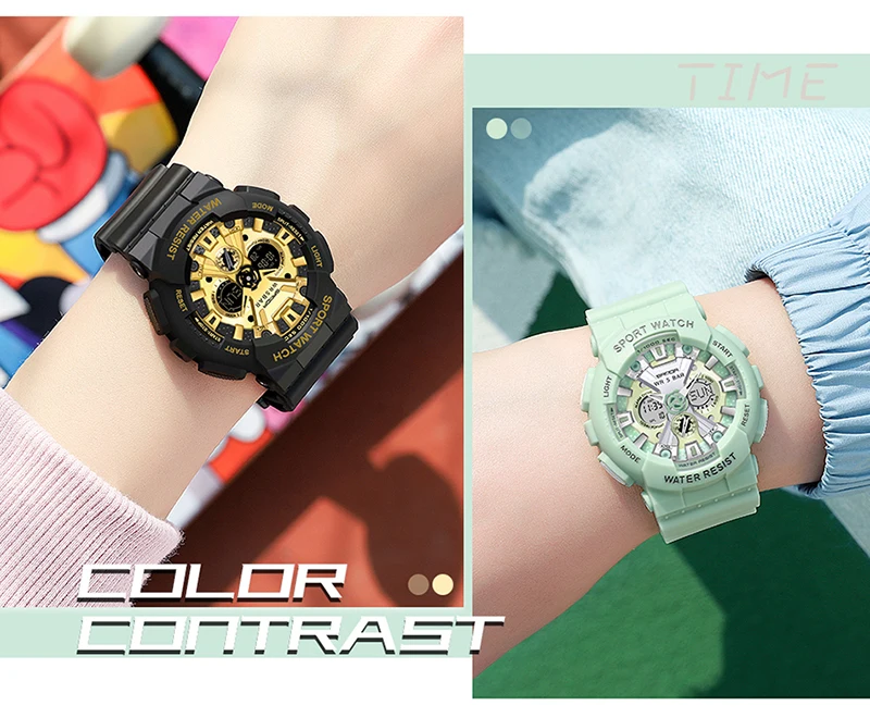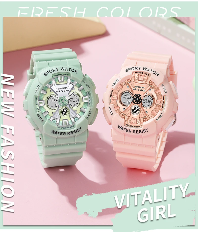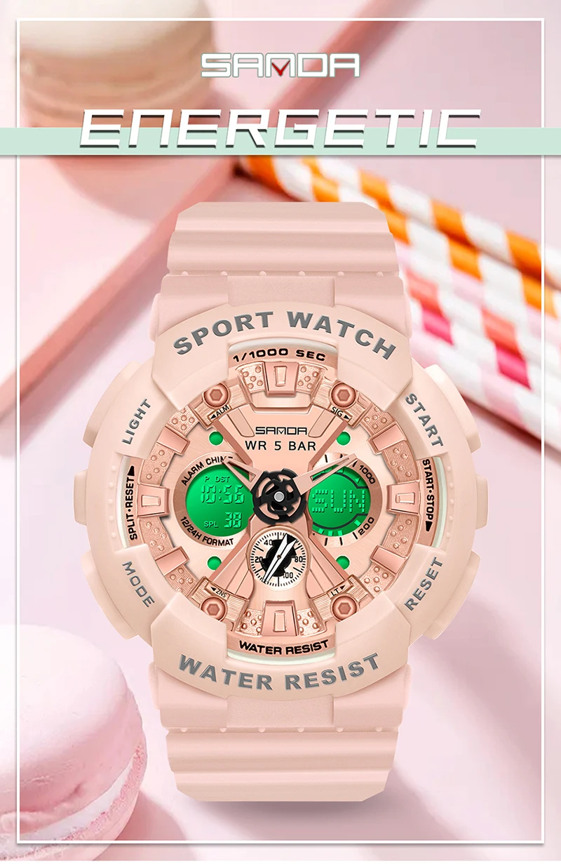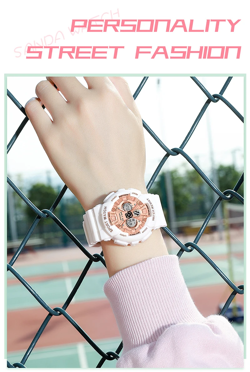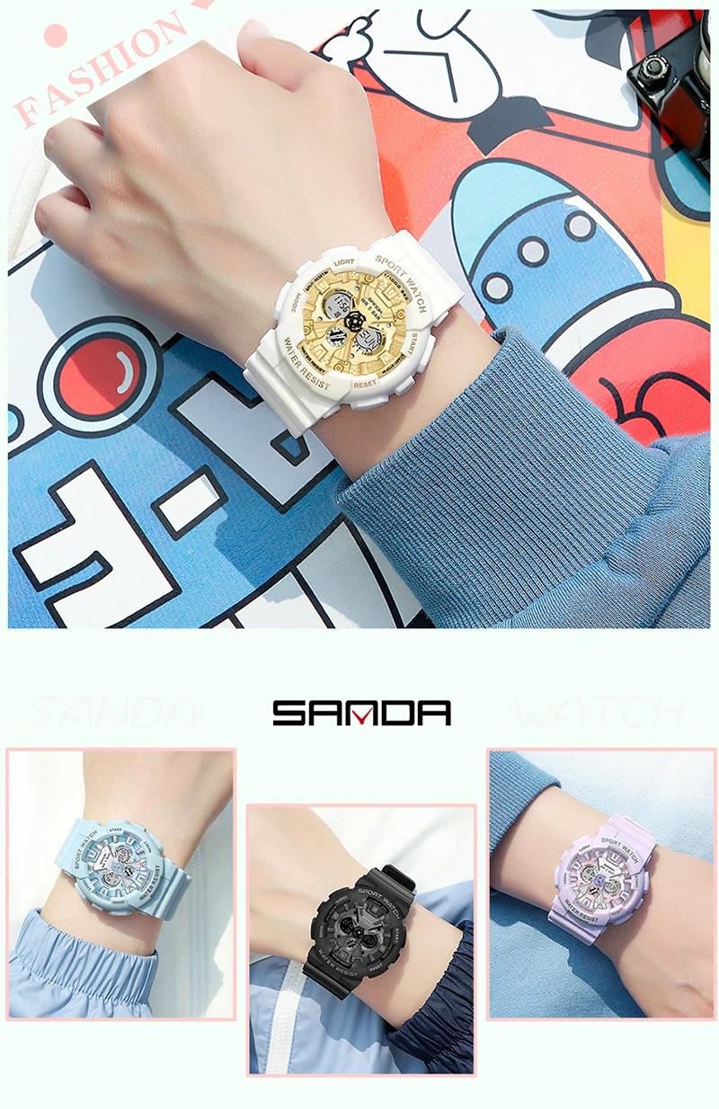 SANDA Luminous HD LED Dual Display Electronic Watch Outdoor Sports Chronograph Women Watch 50M Waterproof Clock Zegarek Damski