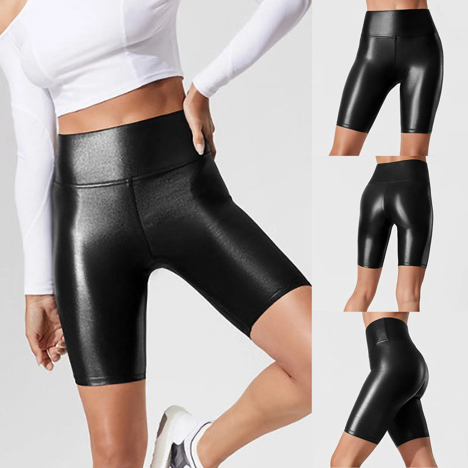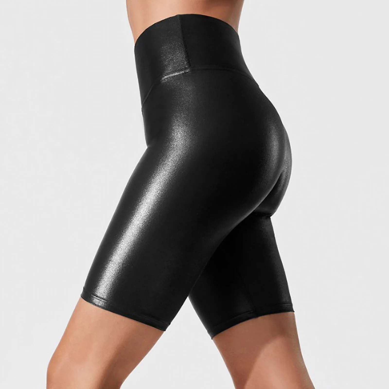 Seamless Sports Short Women High Waiste Imitation Leather Quarter Pants Elastic Bottoming Sports Yoga Pants Running Shorts#FS