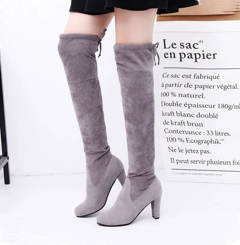 Sexy Thigh High Boots Plus Size High Heels Women Boots Faux Suede Over-the-knee Boot Autumn Female Winter Shoes Botines Mujer