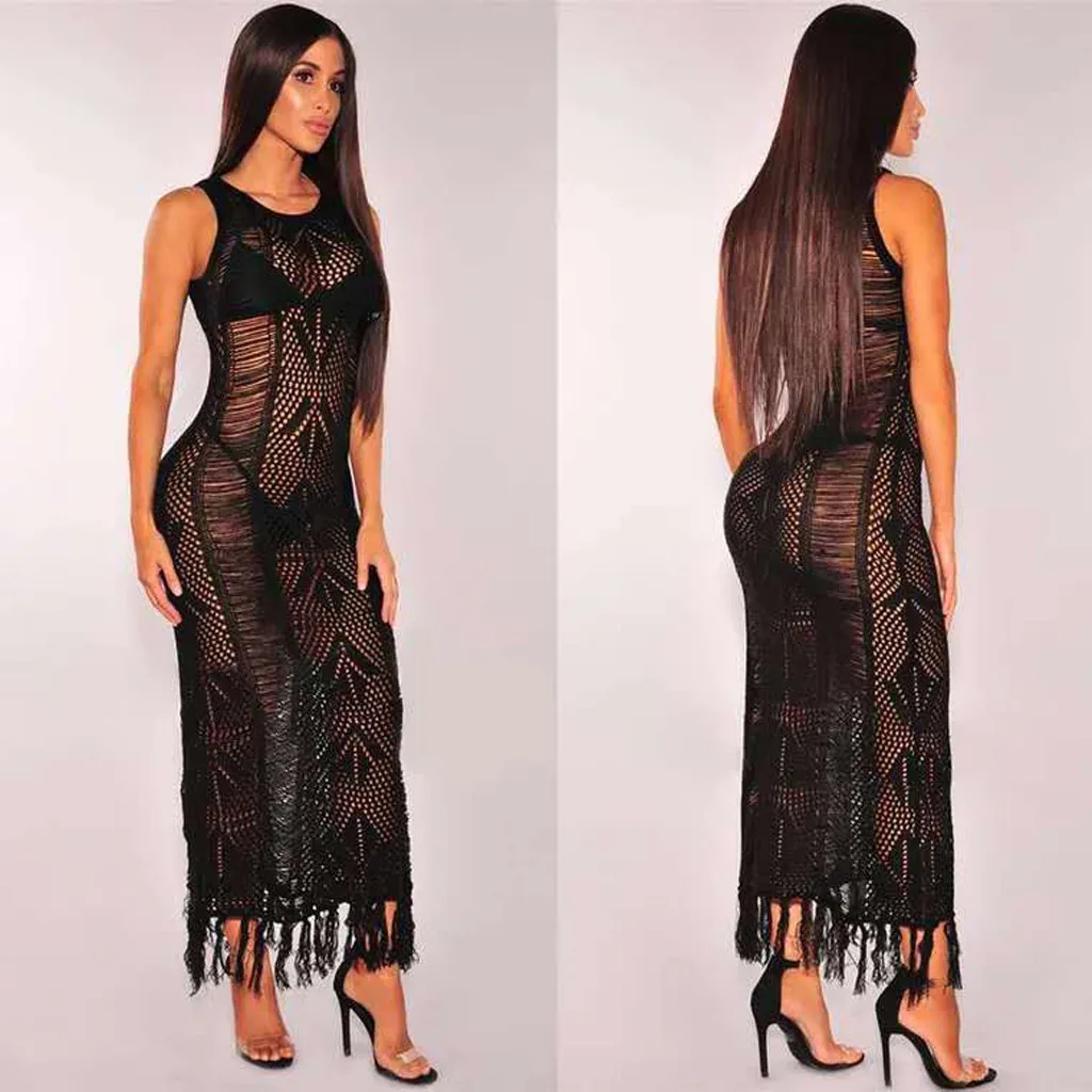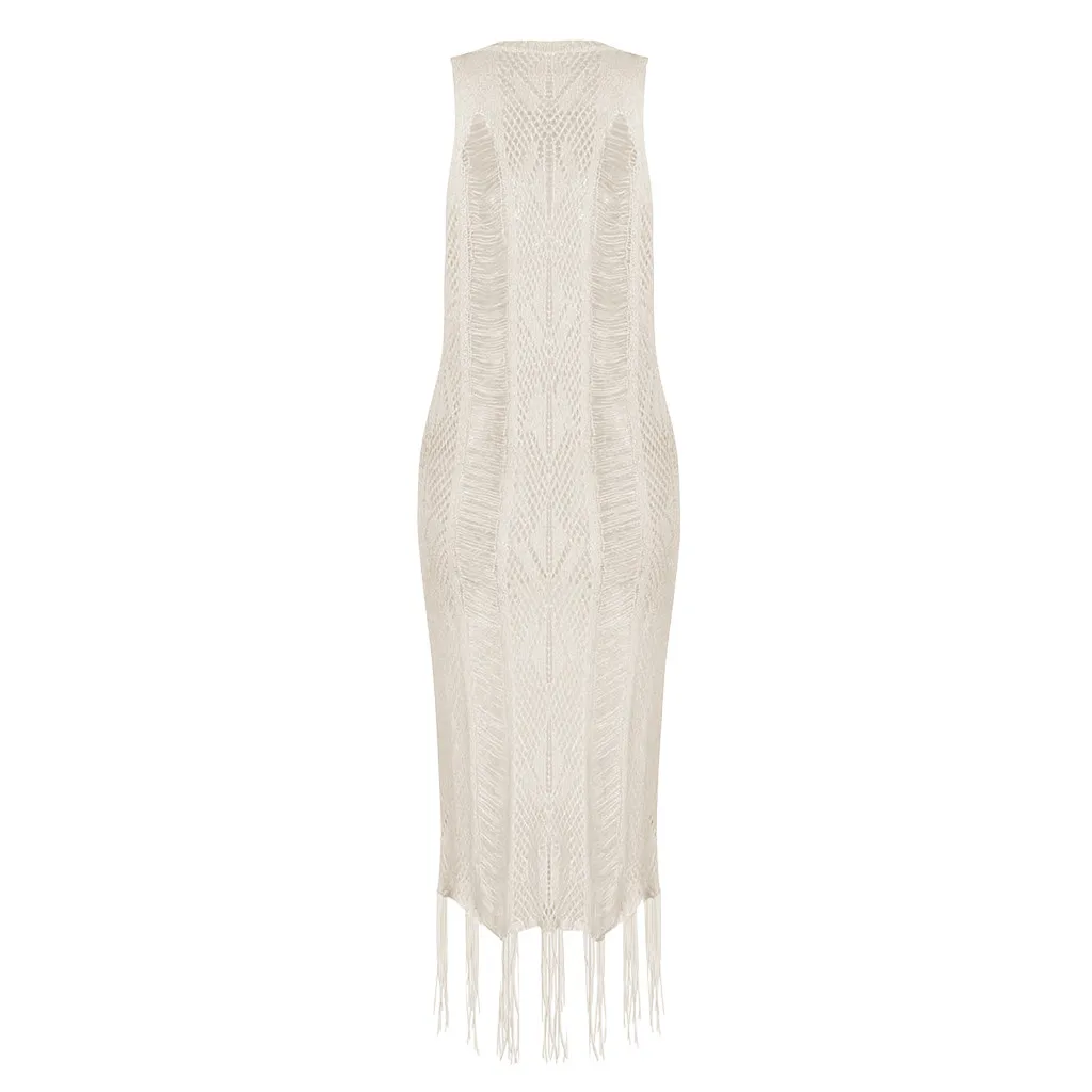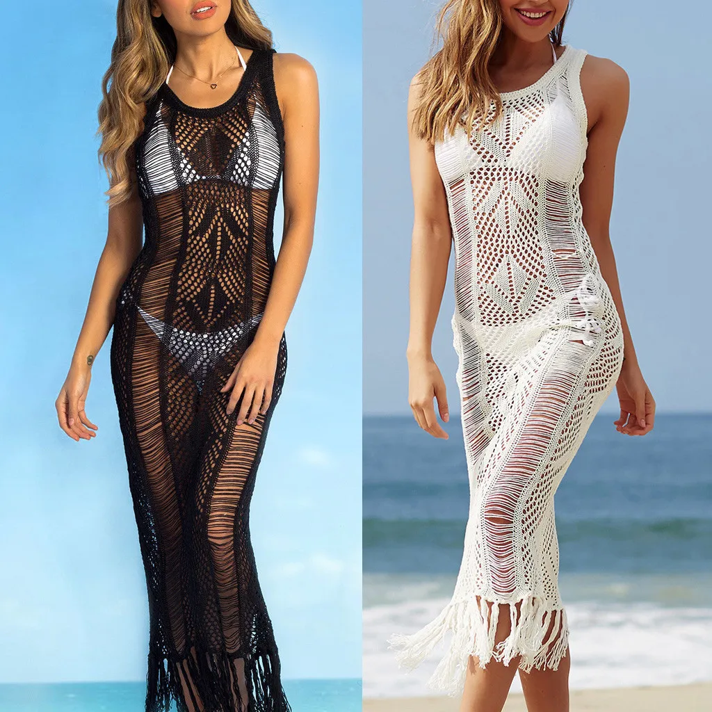 Sexy Women Beach Dress Bathing Swimwear Cover-Ups Summer Bikini Women Suit Lace Crochet Sunshade Beach White Perspective Dress