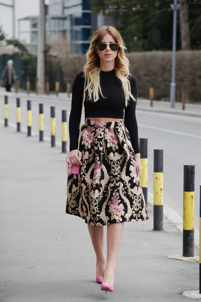 Sexy Women Retro Floral High Waist Pleated Party Midi Skirt Lady Girls Vintage Flower Printed Skirts 4 Size