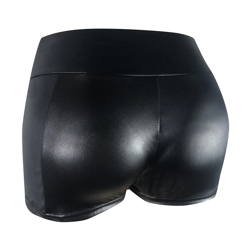 Sexy Womens Black Yoga Shorts Shiny Elastic Waist Shiny Faux Patent PU Leather Short Slim Hot Dance Clubwear Mini Shorts 2021