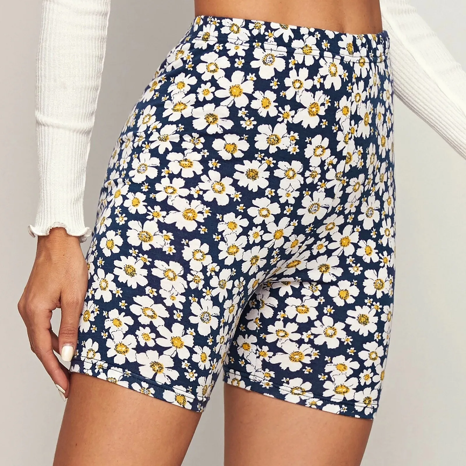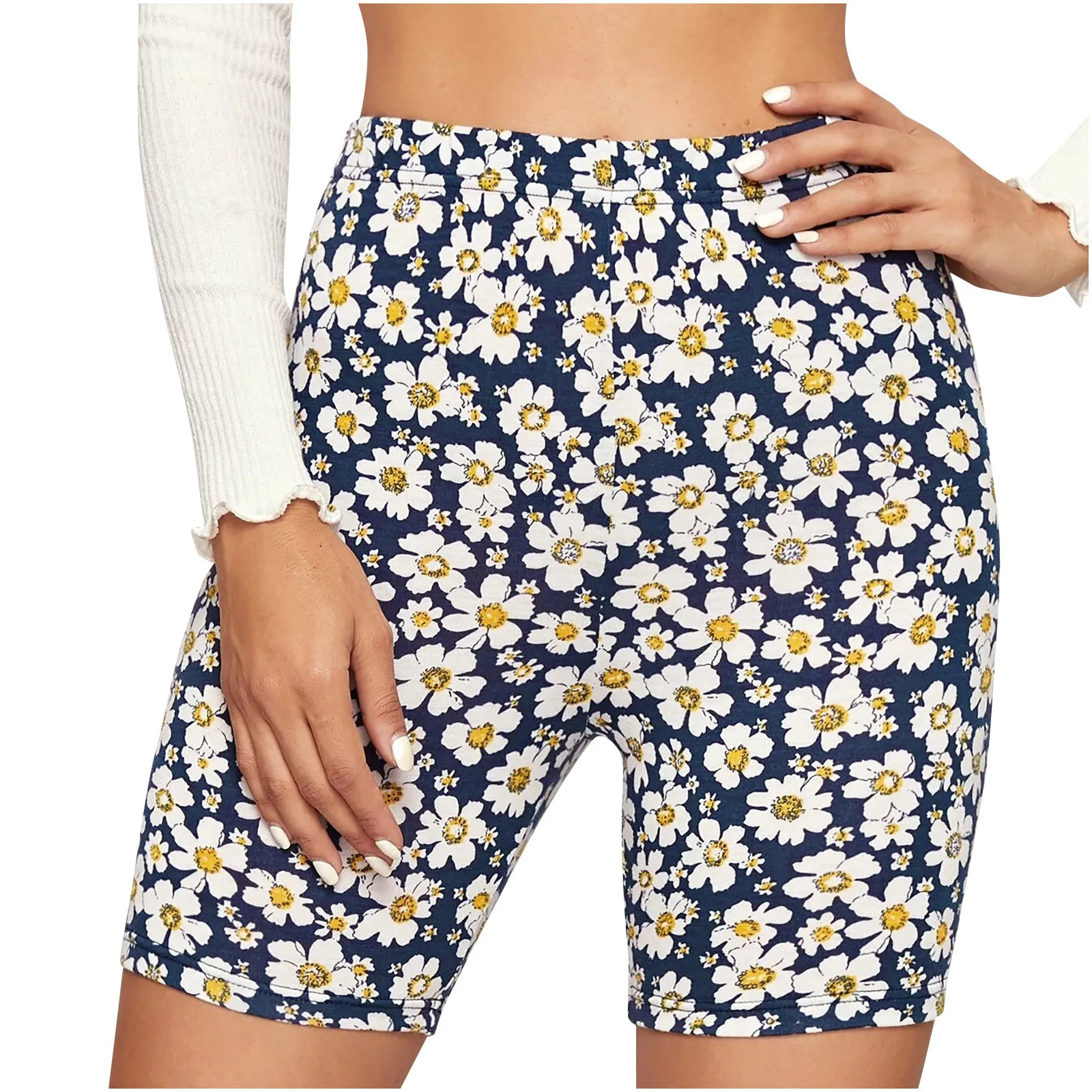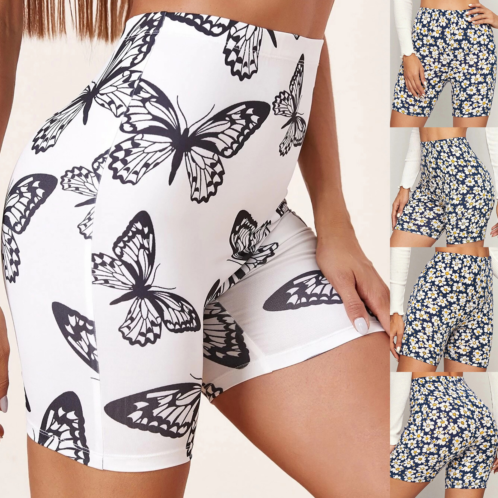Women Basic Slip Bike Print Shorts Compression Workout Leggings Yoga Shorts Pants