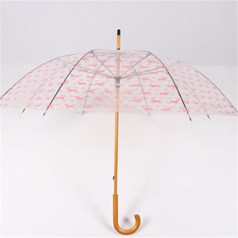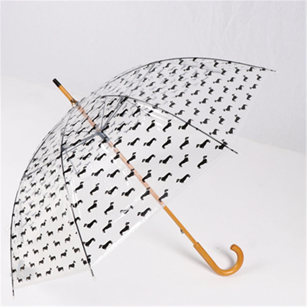 SHOWERSMILE Dog Printed Japanese Umbrella Wooden Handle Transparent Umbrella Adult Rain Men Women Designer Clear Umbrella Big
