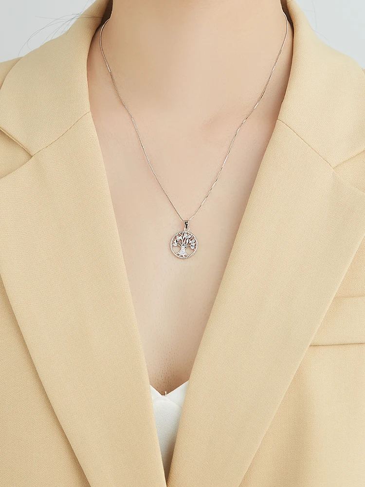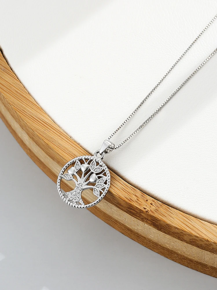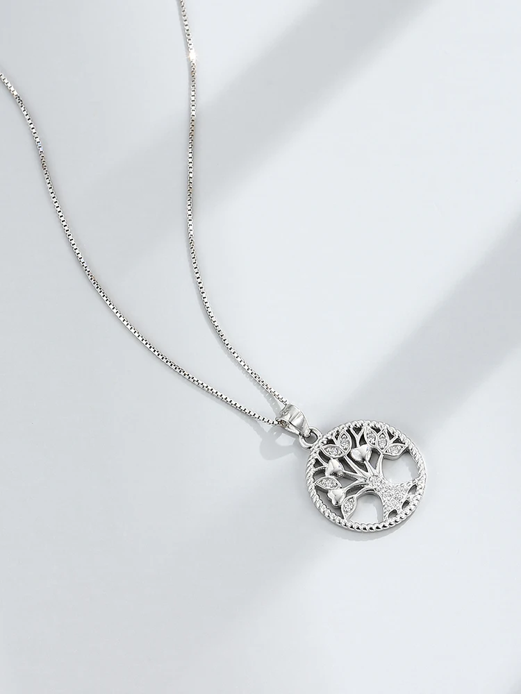 SILVERHOO 925 Sterling Silver Women Necklace Life Tree Shape Pendant Necklaces Peace Love Female Fine Jewelry Mother's Day Gift
