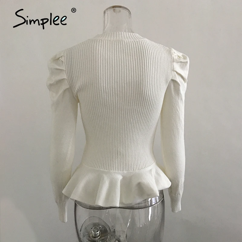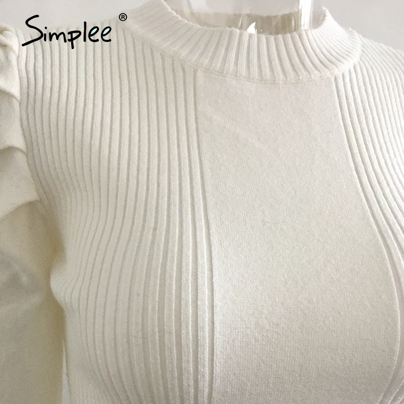 Simple elegant women's round neck solid white Long Sleeve Pullover Sweater Autumn winter female sweater ladies leisure jumper