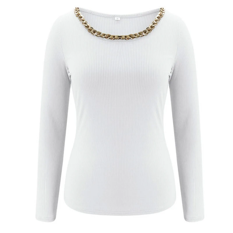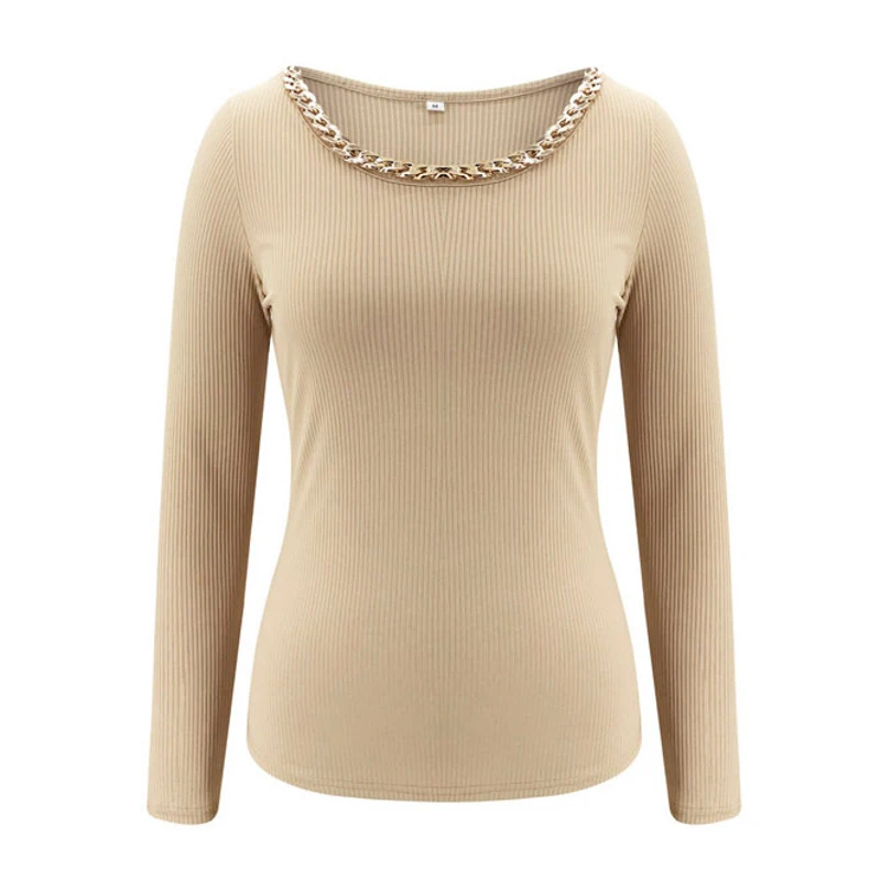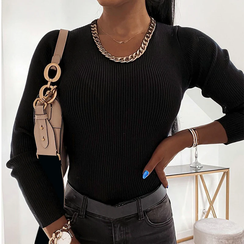 Simplee Basic sexy slim high street pullover sweater Ladies O neck Chain long sleeves sweaters Causal atumn winter woman Sweater