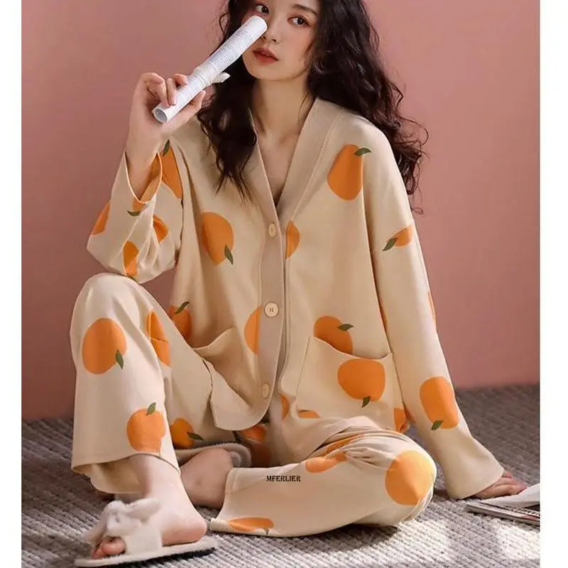 Size 6XL 150KG Women Sleepwear Coat V Neck Long Sleeve Tops and Pants Pajamas Sets For Women Big Size Home Wear